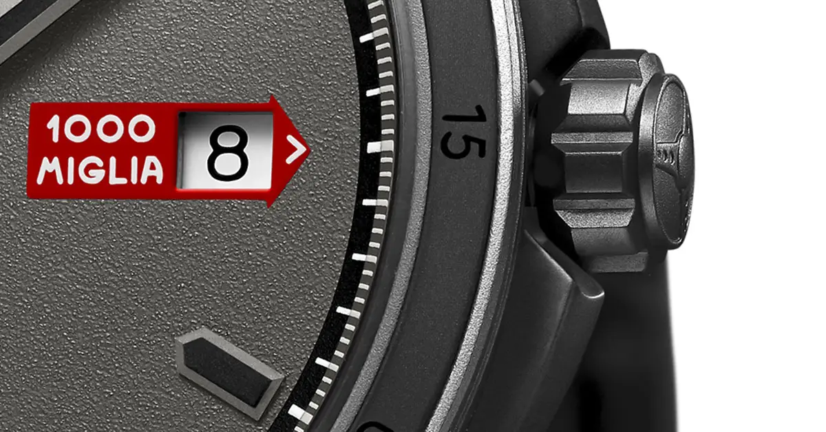Die Mille-Miglia-Uhren vereinen die Ästhetik klassischer Autos und hohe Uhrmachertechnik. Das Design bezieht sich oft auf Details wie die Instrumente an Bord, Zifferblätter, die an Tachometer erinnern, oder Armbänder, die von Dunlop-Reifen aus den 1960er Jahren inspiriert sind.