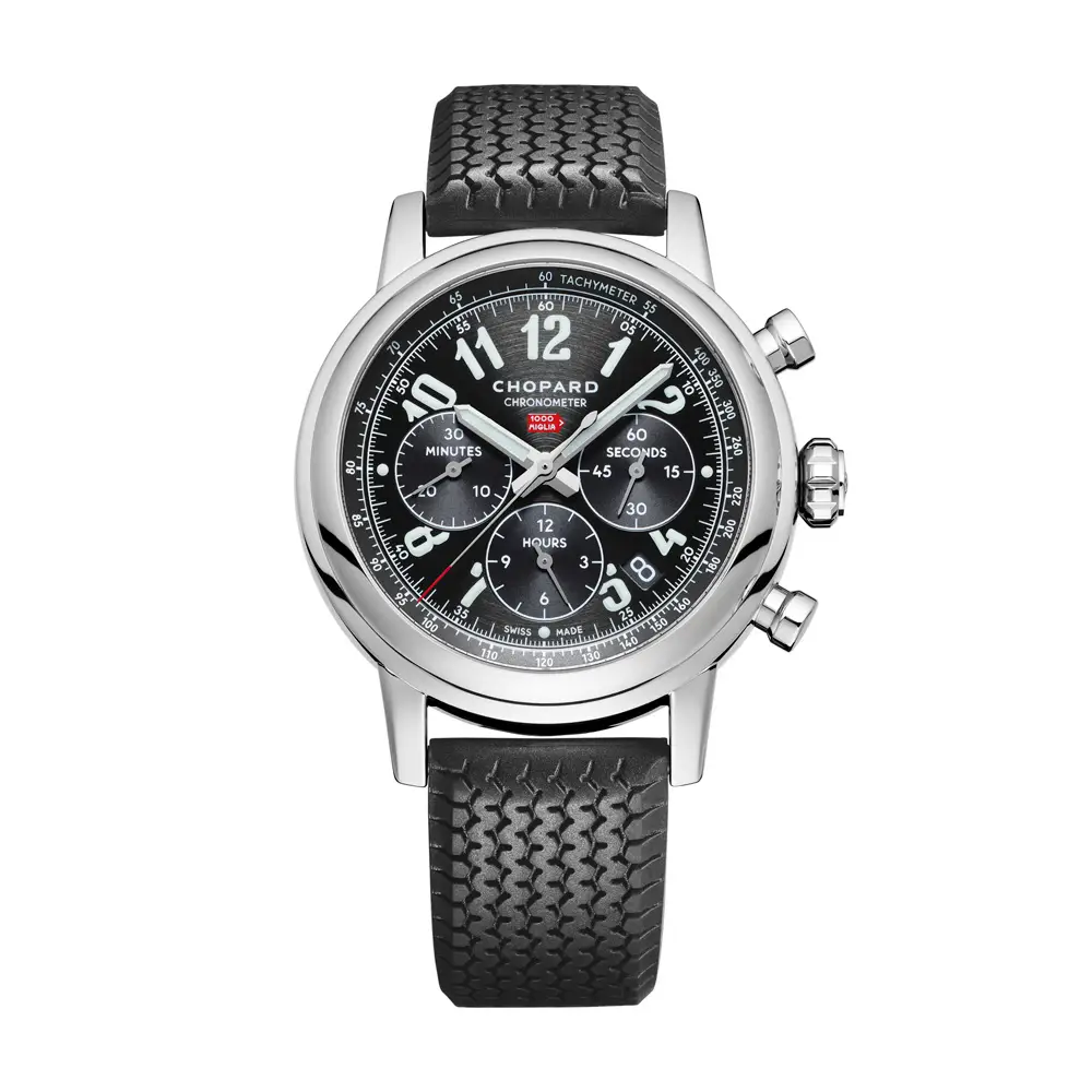 Die Mille-Miglia-Uhren vereinen die Ästhetik klassischer Autos und hohe Uhrmachertechnik. Das Design bezieht sich oft auf Details wie die Instrumente an Bord, Zifferblätter, die an Tachometer erinnern, oder Armbänder, die von Dunlop-Reifen aus den 1960er Jahren inspiriert sind.