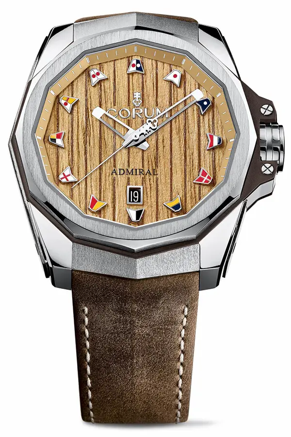 Die Kollektion Admiral von Corum ist eine Hommage an das Meer, an Sportlichkeit und Mut. Sie wurde 1960 eingeführt und entwickelte sich schnell zu einem der markantesten Modelle der Marke. Die Admiral ist bekannt für ihr 12-eckiges Gehäuse und die markanten farbigen Seeflaggen auf dem Zifferblatt, die als Stundenindexe dienen - ein Detail, das auf das internationale Signalalphabet in der Schifffahrt verweist.