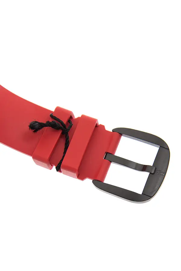 Dank der Wasserdichtigkeit bis 10 ATM / 100 Meter eignet sich diese Uhr ideal für den täglichen Gebrauch und Freizeitaktivitäten. Das sportliche und stilvolle rote Kautschukarmband bildet einen schönen Kontrast zum dunklen Gehäuse und wird mit einer komfortablen Faltschließe gesichert.