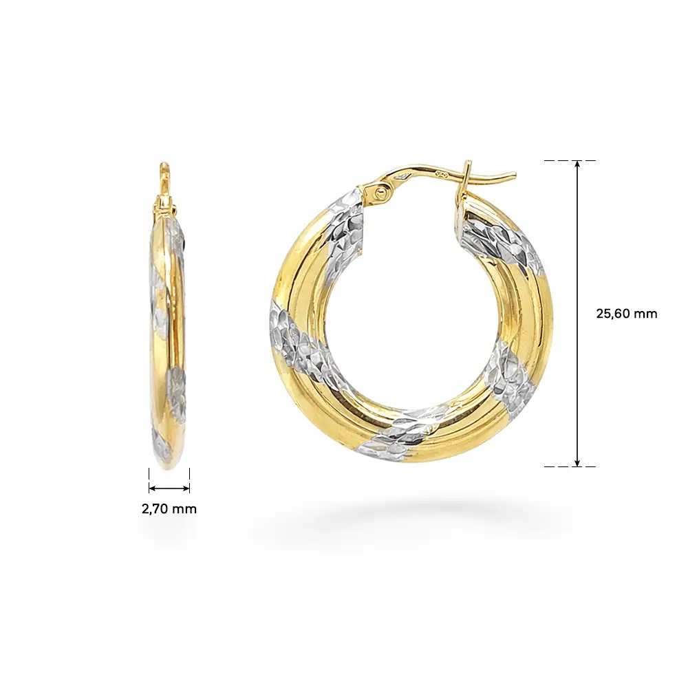 Die klassische Kreisform in Kombination mit einem sicheren Verschluss sorgt für angenehmen Tragekomfort. Mit einem Durchmesser von ca. 25,60 mm und einer Profilbreite von etwa 2,70 mm wirken die Ohrringe leicht und ausgewogen und eignen sich sowohl für den Alltag als auch für besondere Anlässe.