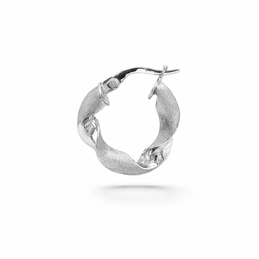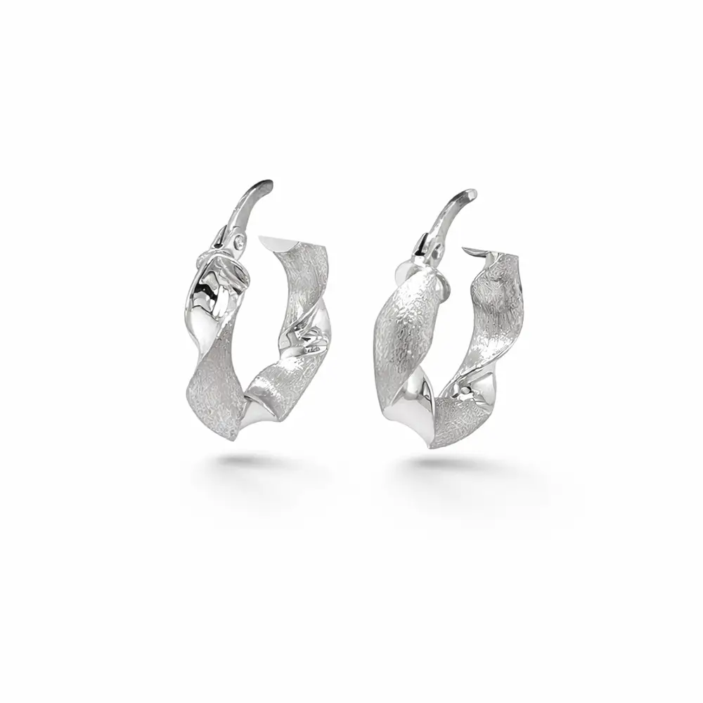 Diese Creolen aus Weißgold begeistern durch ihr elegantes gedrehtes Design, das glatte und fein strukturierte Flächen miteinander verbindet. Das dynamisch geformte Motiv erzeugt ein faszinierendes Lichtspiel und verleiht dem Schmuckstück eine moderne und zugleich zeitlose Ausstrahlung. Die präzise Verarbeitung unterstreicht den luxuriösen Charakter der Ohrringe.