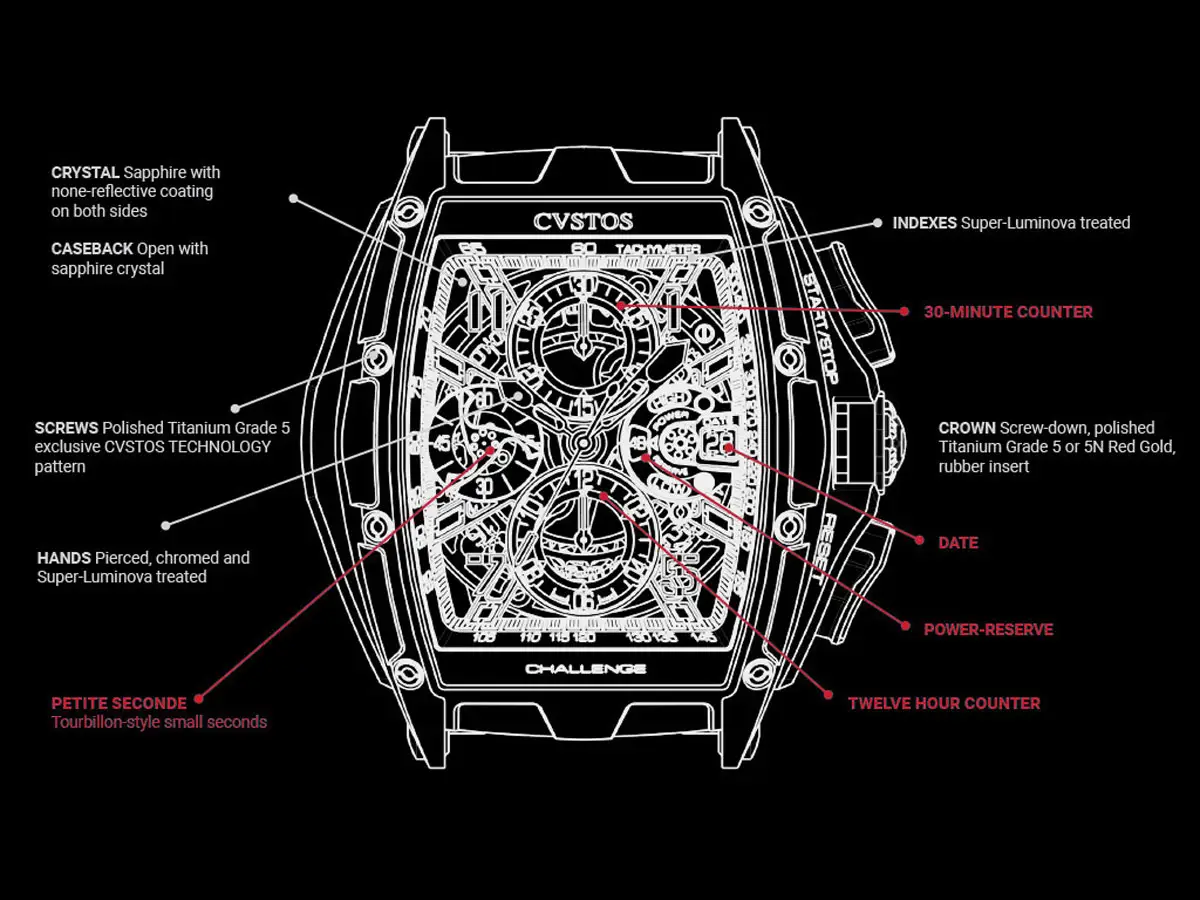 CVSTOS Chrono Schwarz Stahl/Schwarz-Rot B00107.4502005