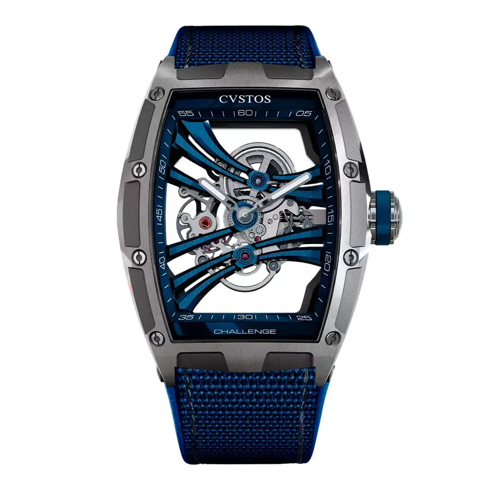 Im Inneren arbeitet das skelettierte Kaliber CVS610 mit einer Gangreserve von 70 Stunden. Die blauen PVD-Brücken und feine Handveredelung machen jedes Detail sichtbar. Saphirglas mit Antireflexbeschichtung, eine verschraubte Krone aus Titan Grade 5 und eine Wasserdichtigkeit bis 100 m garantieren Robustheit und Stil zugleich.