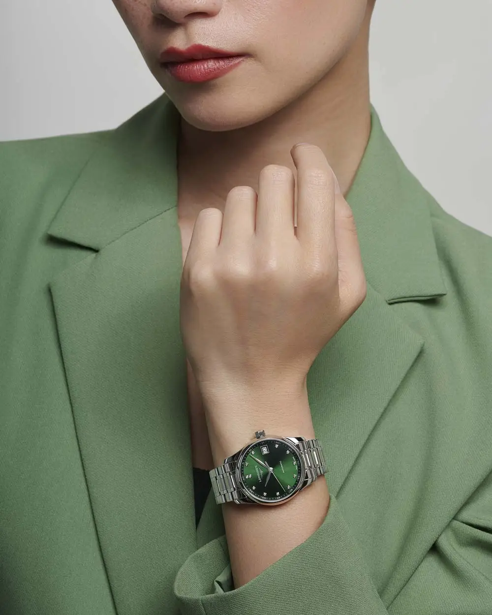 Das attraktive grüne analoge Zifferblatt mit Diamantindizes verleiht der Uhr einen Hauch von Luxus und wird durch ein praktisches Datumsfenster bei 3 Uhr ergänzt.