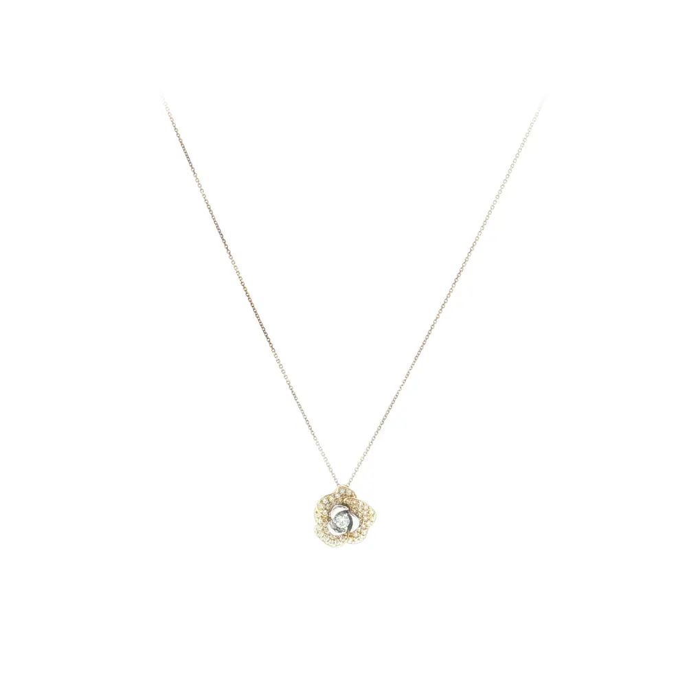 Elegante Halskette aus Gelb- und Weißgold mit Blume und Zirkonia