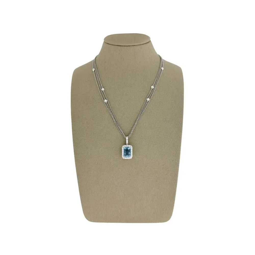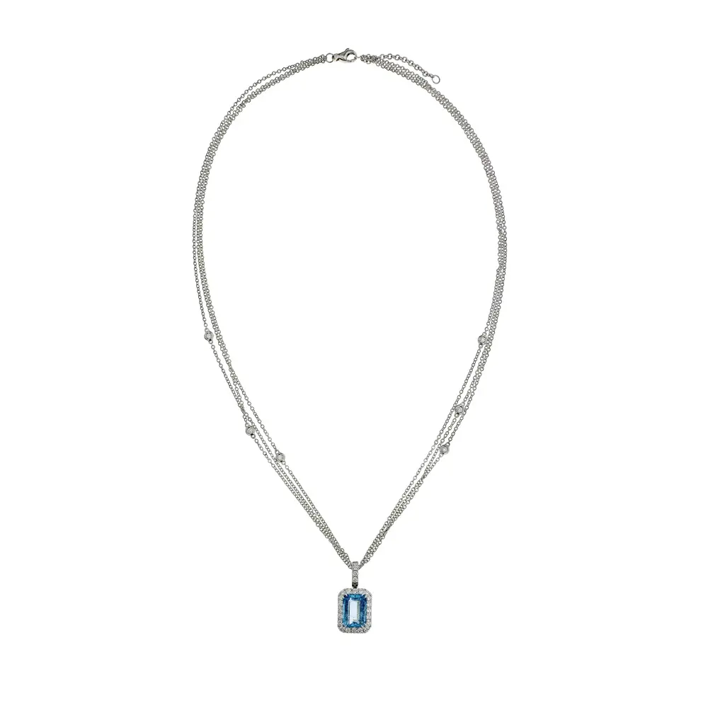 Elegante Halskette aus Weißgold mit Aquamarin und Diamanten