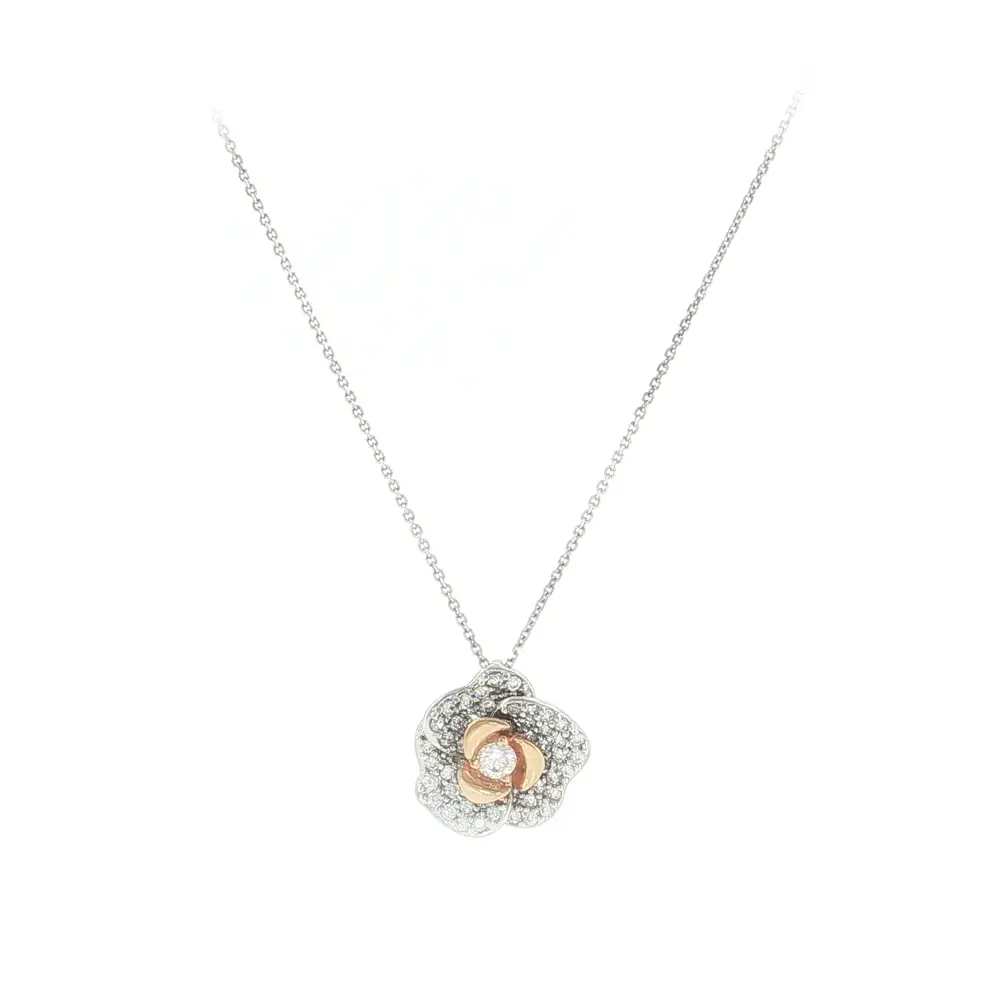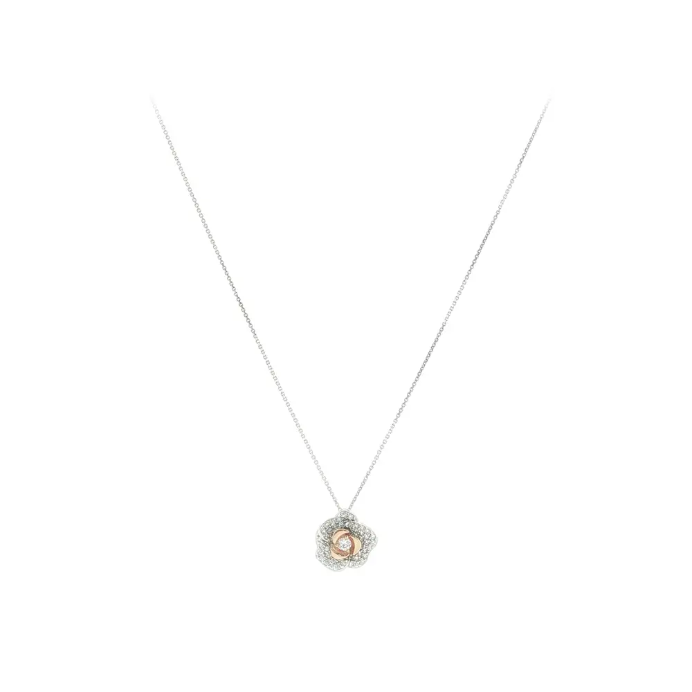 Elegante Halskette aus Weißgold mit Blumenanhänger und Zirkonia