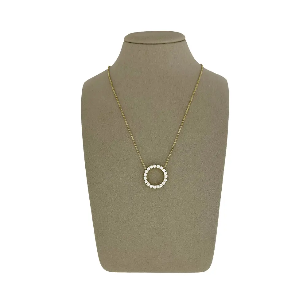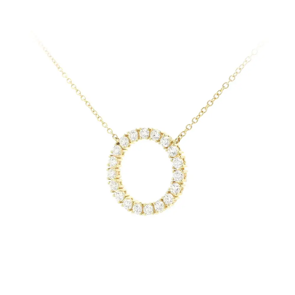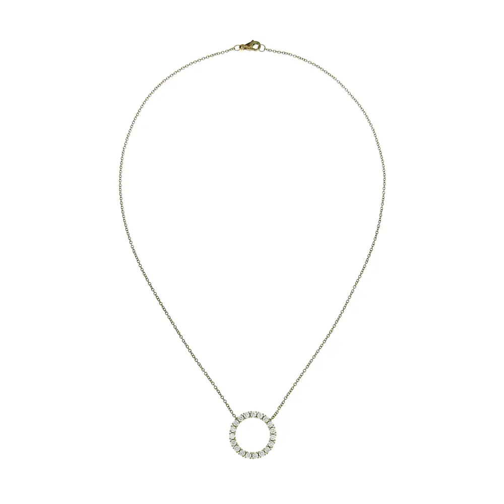 Diese wunderschöne Halskette ist eine Kombination aus Eleganz, Luxus und präziser Verarbeitung. Die zarte 42 cm lange Kette aus 18-karätigem Gold sorgt für Leichtigkeit und Komfort beim Tragen. Das dominierende Element des Schmucks ist der kreisförmige Anhänger, der mit Diamanten von insgesamt 1,20 Karat in der Farbe G und der Reinheit VS besetzt ist und für außergewöhnliches Funkeln und einen raffinierten Look sorgt.