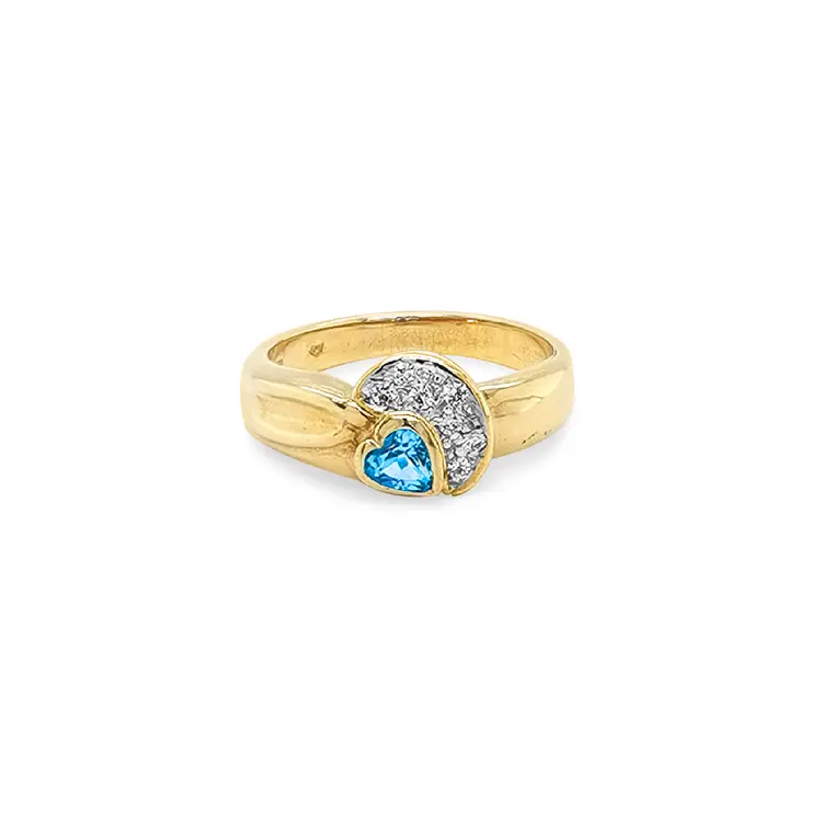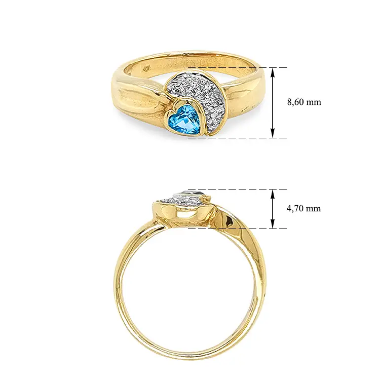 Exklusiver Goldring mit herzförmigem Blau-Topas und Zirkonia