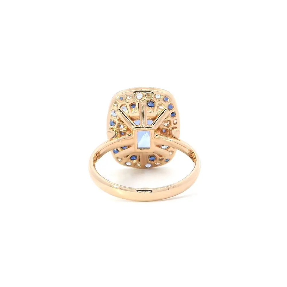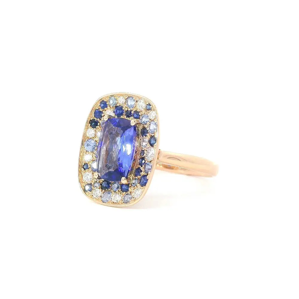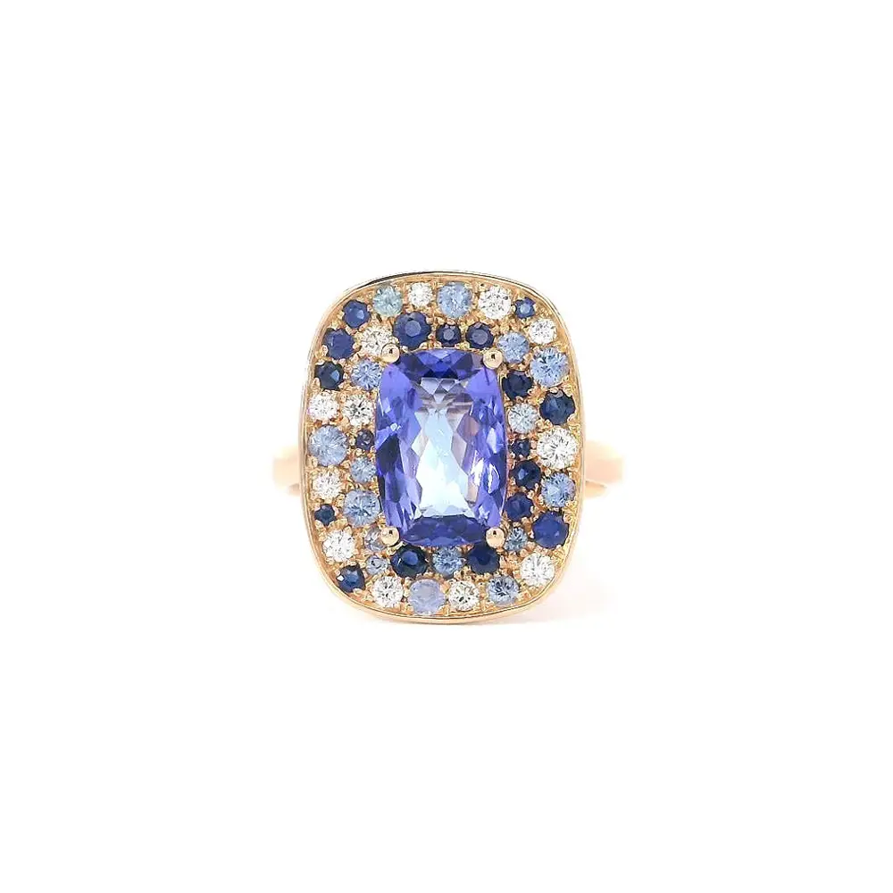 Farbige Harmonie von Tansaniten, Saphiren und Diamanten in Roségold