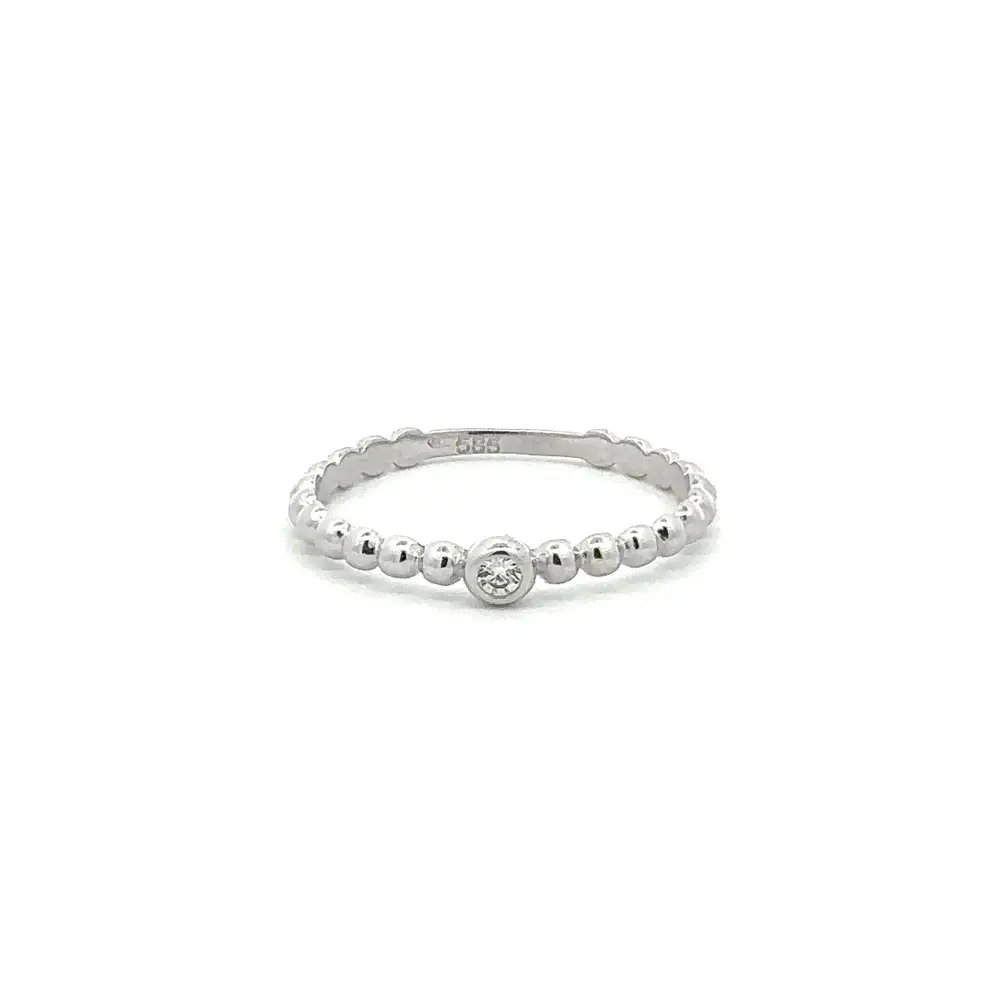 Der feine goldene Ring mit zentralem Zirkon besticht durch sein klares und leichtes Design, das natürliche Eleganz unterstreicht. Die kugelförmige Struktur der Ringschiene verleiht dem Ring einen modernen und zugleich verspielten Charakter, während der zentrale Zirkon einen dezenten Glanzakzent setzt. Dank des minimalistischen Stils eignet sich der Ring ideal für den Alltag sowie zum Kombinieren mit weiteren Ringen.