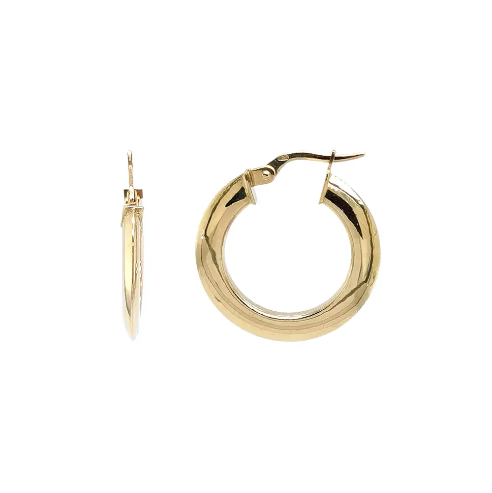 Flache runde Ohrringe aus Gelbgold mit Barverschluss
