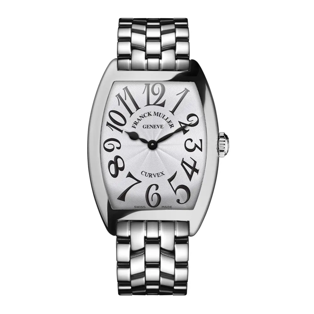 Die Franck Muller Cintrée Curvex zählt zu den charakteristischsten Silhouetten des Hauses. Das geformte tonneau-Gehäuse, die ausdrucksstarken Ziffern und das feine Sonnenguilloché-Zifferblatt erzeugen eine zeitlose Ästhetik mit subtilen Art-Déco-Elementen.