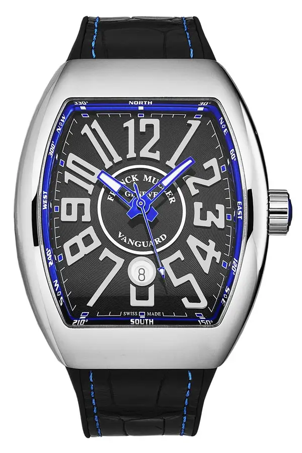 Designelemente wie große applizierte Ziffern, markante Zeiger, sportliche Kautschuk- oder Textilarmbänder und skelettierte Zifferblätter verleihen der Vanguard-Kollektion ein unverwechselbares und modernes Aussehen. Die Uhren verfügen häufig über Komplikationen wie einen Chronographen, ein Tourbillon oder ein automatisches Datumskaliber, die alle von Franck Mullers eigenen mechanischen Uhrwerken angetrieben werden.