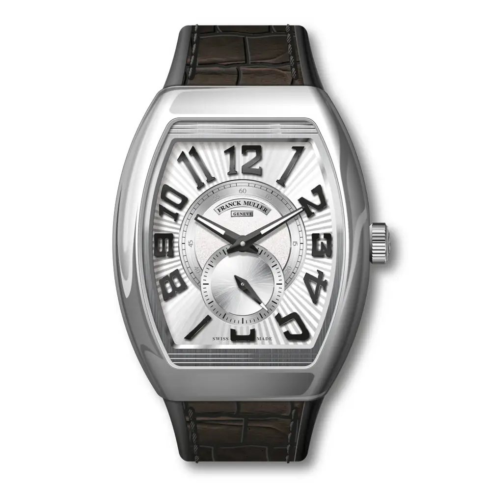 Vanguard ist die moderne und dynamische Kollektion von Franck Muller, die Sportlichkeit mit avantgardistischem Design verbindet. Sie zeichnet sich durch eine markante Tonneau-Silhouette, fließende Linien und ein robustes Gehäuse aus, das massiv, aber elegant und ergonomisch wirkt.