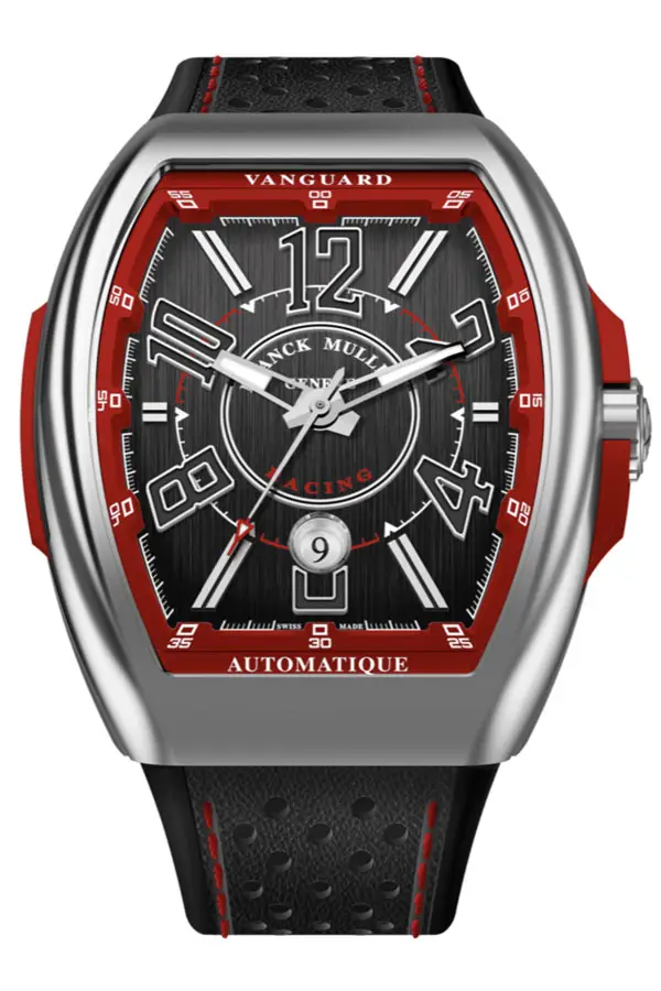Designelemente wie große applizierte Ziffern, markante Zeiger, sportliche Kautschuk- oder Textilarmbänder und skelettierte Zifferblätter verleihen der Vanguard-Kollektion ein unverwechselbares und modernes Aussehen. Die Uhren verfügen häufig über Komplikationen wie einen Chronographen, ein Tourbillon oder ein automatisches Datumskaliber, die alle von Franck Mullers eigenen mechanischen Uhrwerken angetrieben werden.
