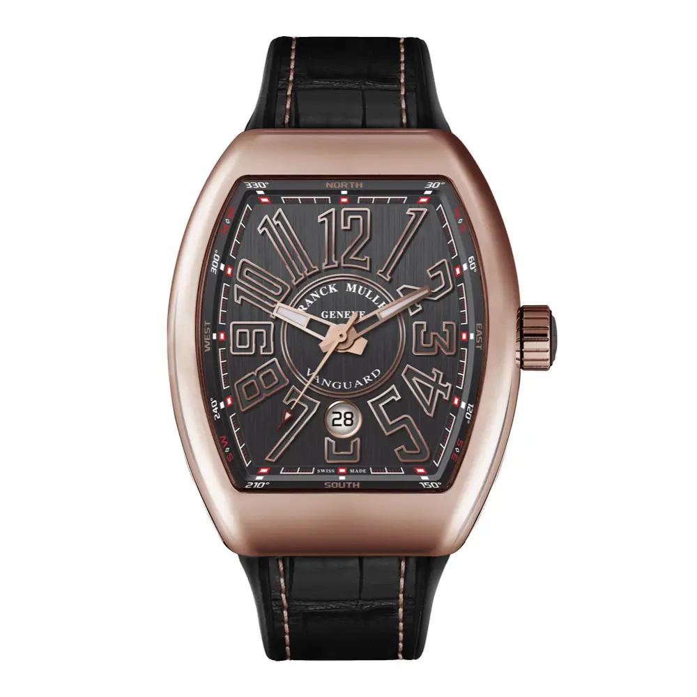 Vanguard ist die moderne und dynamische Kollektion von Franck Muller, die Sportlichkeit mit avantgardistischem Design verbindet. Sie zeichnet sich durch eine markante Tonneau-Silhouette, fließende Linien und ein robustes Gehäuse aus, das massiv, aber elegant und ergonomisch wirkt.