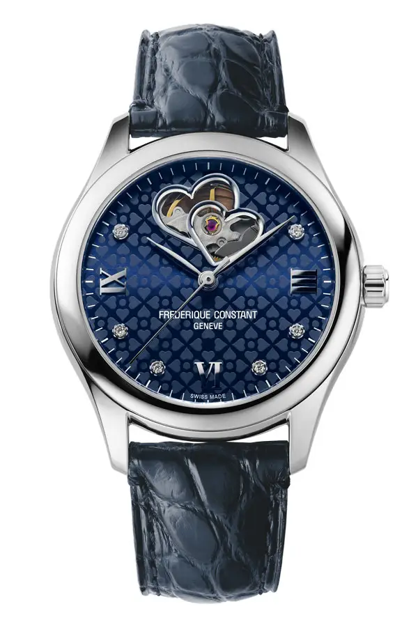 Im Inneren arbeitet ein mechanisches Uhrwerk mit automatischem Aufzug, das für Präzision und Zuverlässigkeit steht. Das markante 'Double Heart Beat'-Design mit offener Unruh auf dem Zifferblatt erlaubt einen faszinierenden Blick ins Innere – ein Highlight für jede Uhrenliebhaberin.