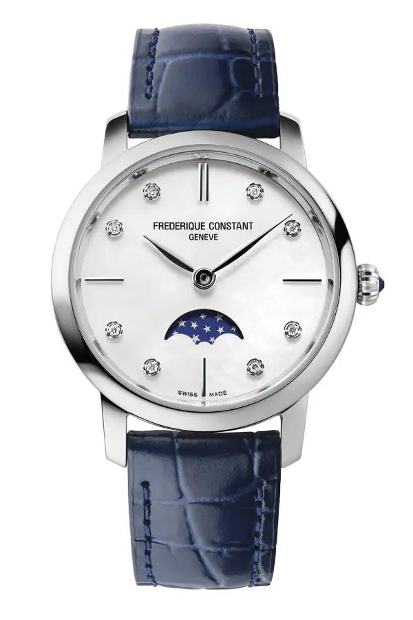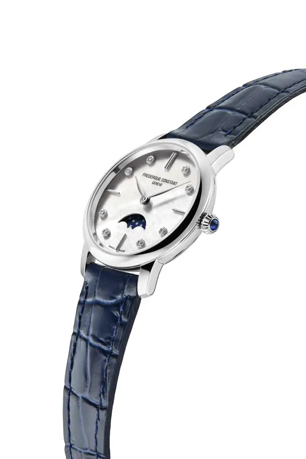 Frederique Constant Slimline Ladies Moonphase FC-206MPWD1S6 ist die perfekte Wahl für Frauen, die zeitlose Eleganz, Funktionalität und hohe Qualität schätzen.