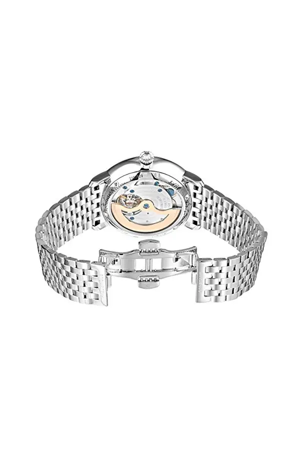 Frederique Constant lässt in seinen Modelllinien luxuriöse Materialien zur Geltung kommen. Das Uhrenarmband besteht aus kleinen Teilen, die in ein Stahlgehäuse übergehen. Das weiße Zifferblatt zeigt deutlich die Einteilung der Zeiträume. Lediglich die Datumsfunktion und die Anzeige der Mondphasen werden der genauen Zeit hinzugefügt. Die Uhr hat eine stilvolle Klarheit und unterstreicht Ihre Eleganz.