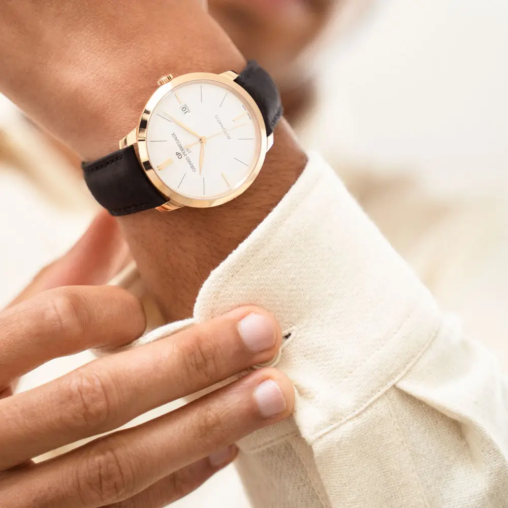 Typische Merkmale sind die klaren Zifferblätter, die horizontalen Linien, die subtilen Anzeigen und die raffinierten Details, die an die Ästhetik der Zwischenkriegszeit erinnern. Im Inneren dieser Modelle ticken die eigenen mechanischen Uhrwerke von Girard-Perregaux, oft mit Komplikationen wie Datum, kleiner Sekunde, Mondphase oder sogar Tourbillon.