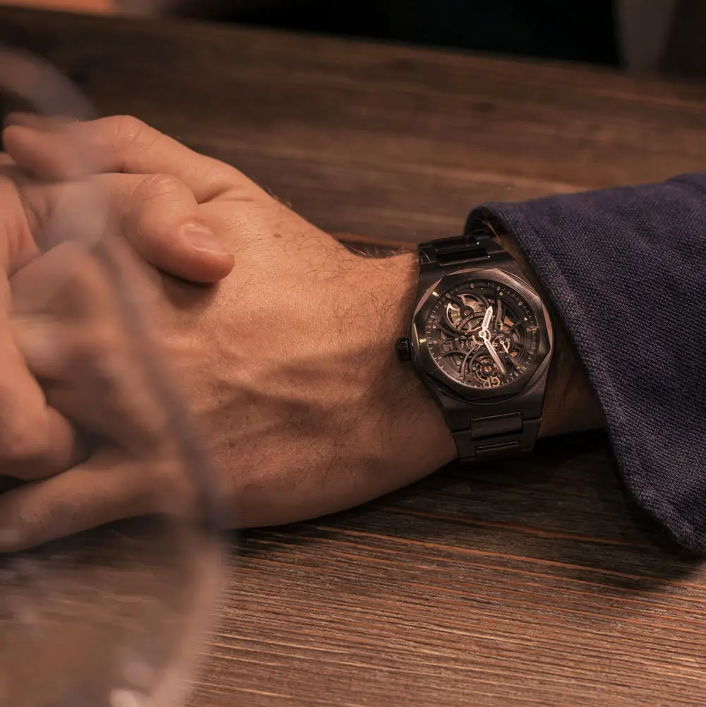 Mit einem integrierten Keramikarmband und dreifach faltbarer Schließe bietet die Uhr eine Wasserdichtigkeit bis 100 m (10 bar). Die Laureato Skeleton Ceramic richtet sich an Liebhaber von Innovation, markantem Design und moderner Eleganz.