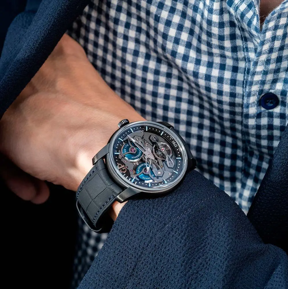 Mit schwarzem Alligatorlederband und Titanfaltschließe sowie Wasserdichtigkeit bis 30 m (3 bar) richtet sich die Neo Bridges Earth to Sky Edition an Liebhaber von Innovation, Leichtigkeit und technischer Perfektion.