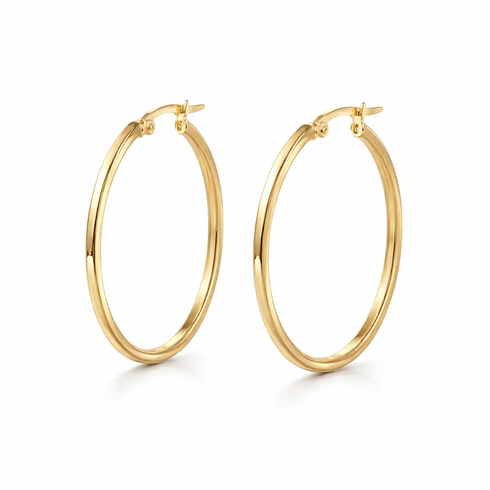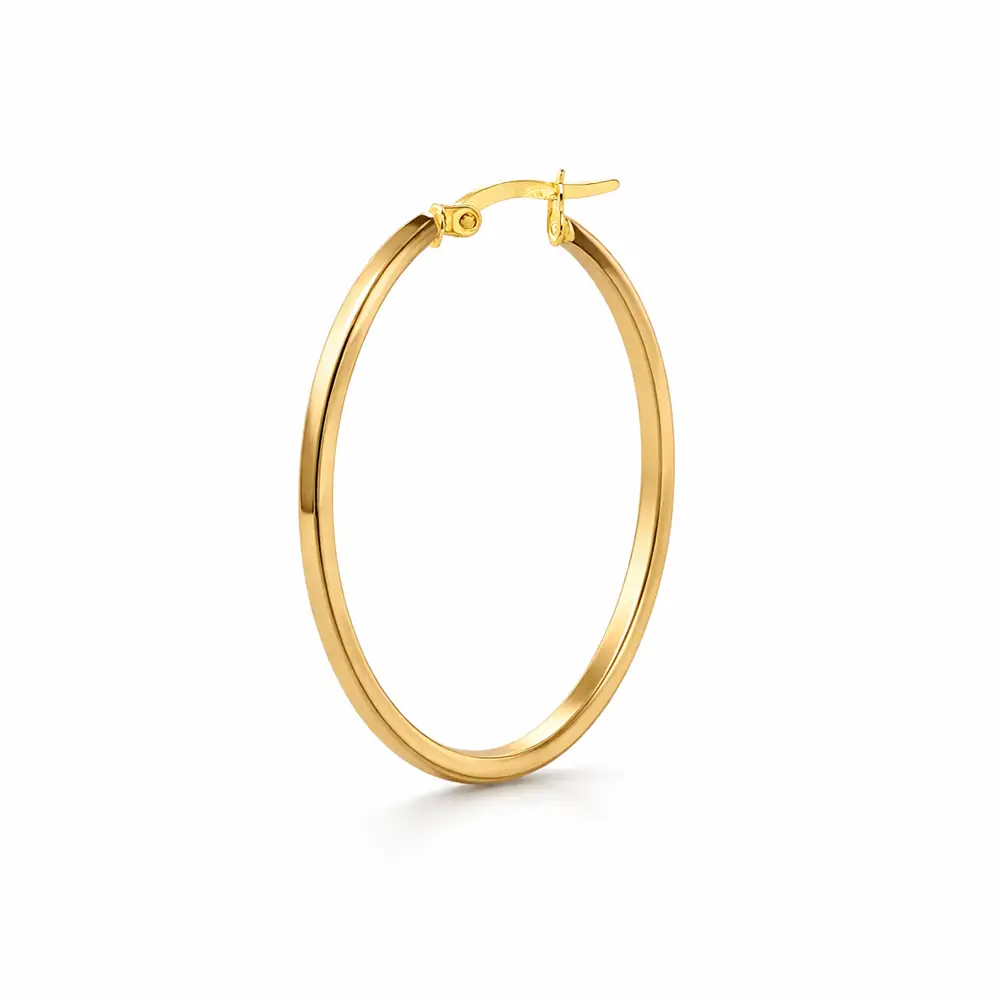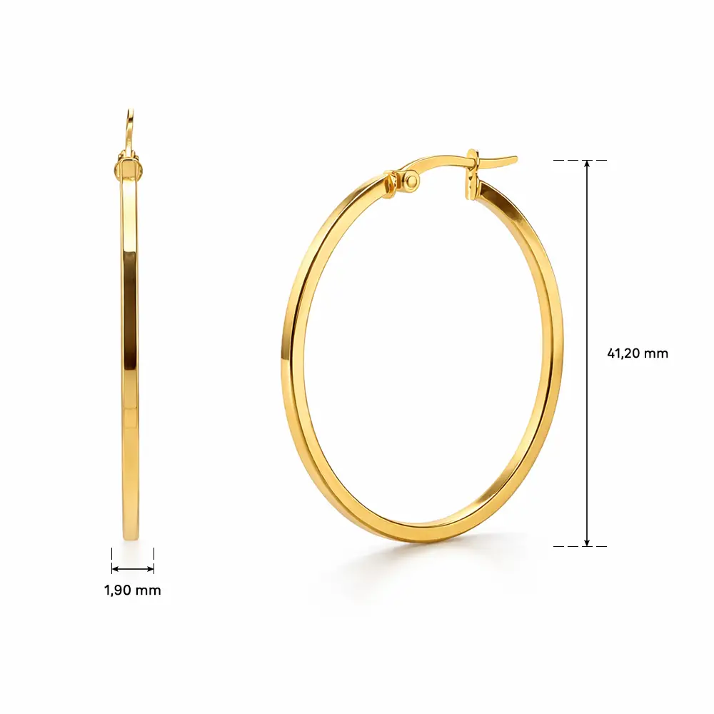 Die klassische Kreisform in Kombination mit einem sicheren Verschluss sorgt für hohen Tragekomfort. Mit einem Durchmesser von ca. 41,20 mm und einer schlanken Profilbreite von etwa 1,90 mm wirken die Ohrringe leicht und luftig und eignen sich sowohl für den Alltag als auch für elegantere Anlässe.