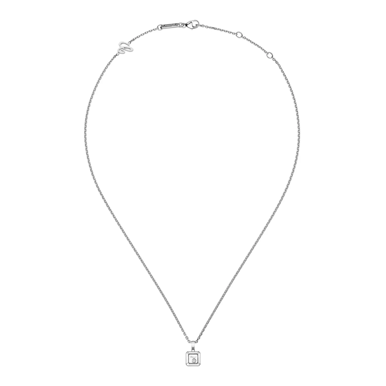 Die Chopard Happy Diamonds Icons Halskette 79A114-1001 ist ein mühelos elegantes Schmuckstück, das die feminine Zartheit und die Freude an kleinen Details unterstreicht. Gefertigt aus 18 kt Weißgold (750/1000) mit hochglanzpolierter Oberfläche, reflektiert sie das Licht auf wunderschöne Weise. Die Halskette besteht aus feinen, flexiblen Gliedern mit einer Länge von 42 cm, die perfekten Sitz und hohen Tragekomfort garantieren.