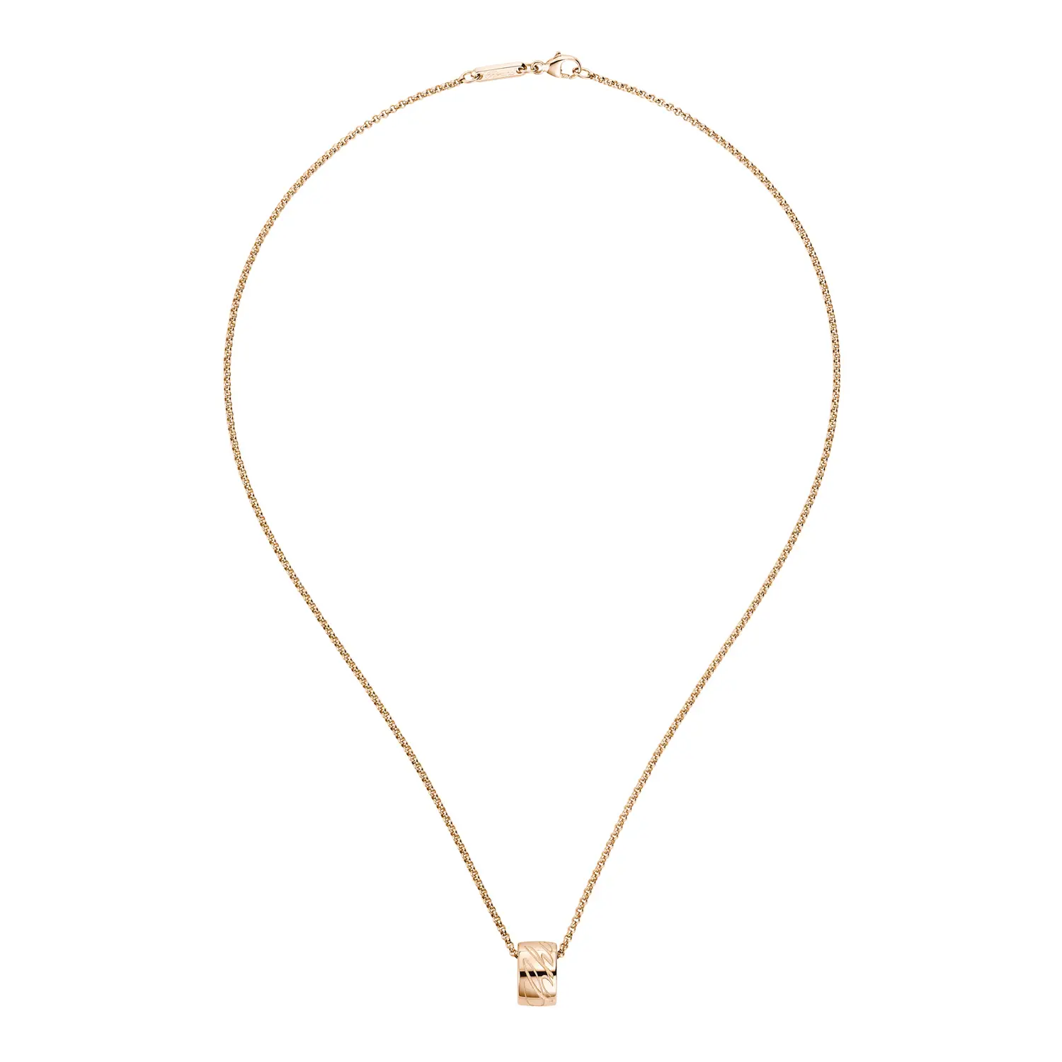 Diese elegante Halskette aus der Chopardissimo-Kollektion verkörpert die Essenz der Marke Chopard – fließende Linien, harmonische Formen und dezenten Luxus. Gefertigt aus 18 kt Roségold und mit dem ikonischen Chopard-Schriftzug graviert, vereint sie modernes Design mit zeitloser Eleganz.