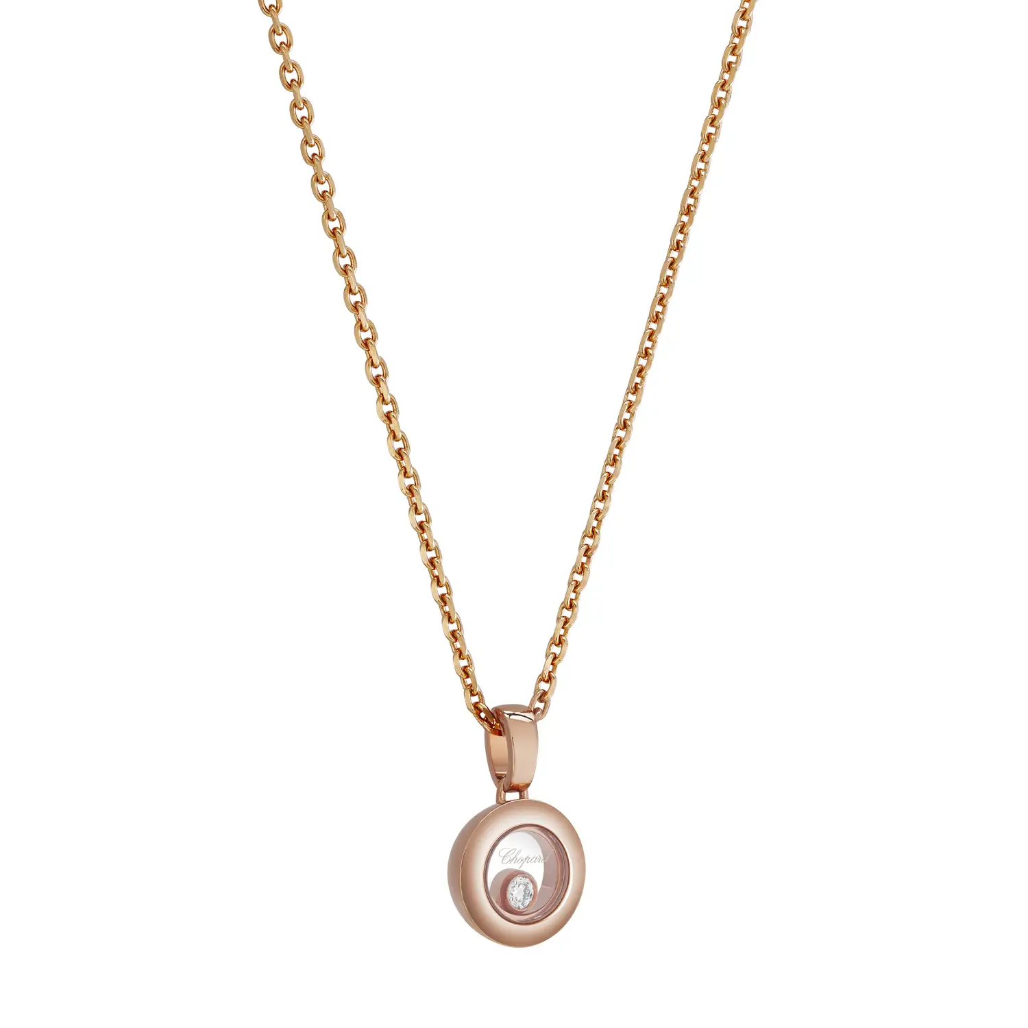 Der Chopard Happy Diamonds Anhänger 79A017-5001 verzaubert mit seiner minimalistischen Schönheit und feinem Luxus. Dieses elegante Schmuckstück ist aus 18 kt Roségold (750/1000) gefertigt und besitzt eine perfekt polierte Oberfläche, die ihm moderne Noblesse und femininen Charme verleiht.