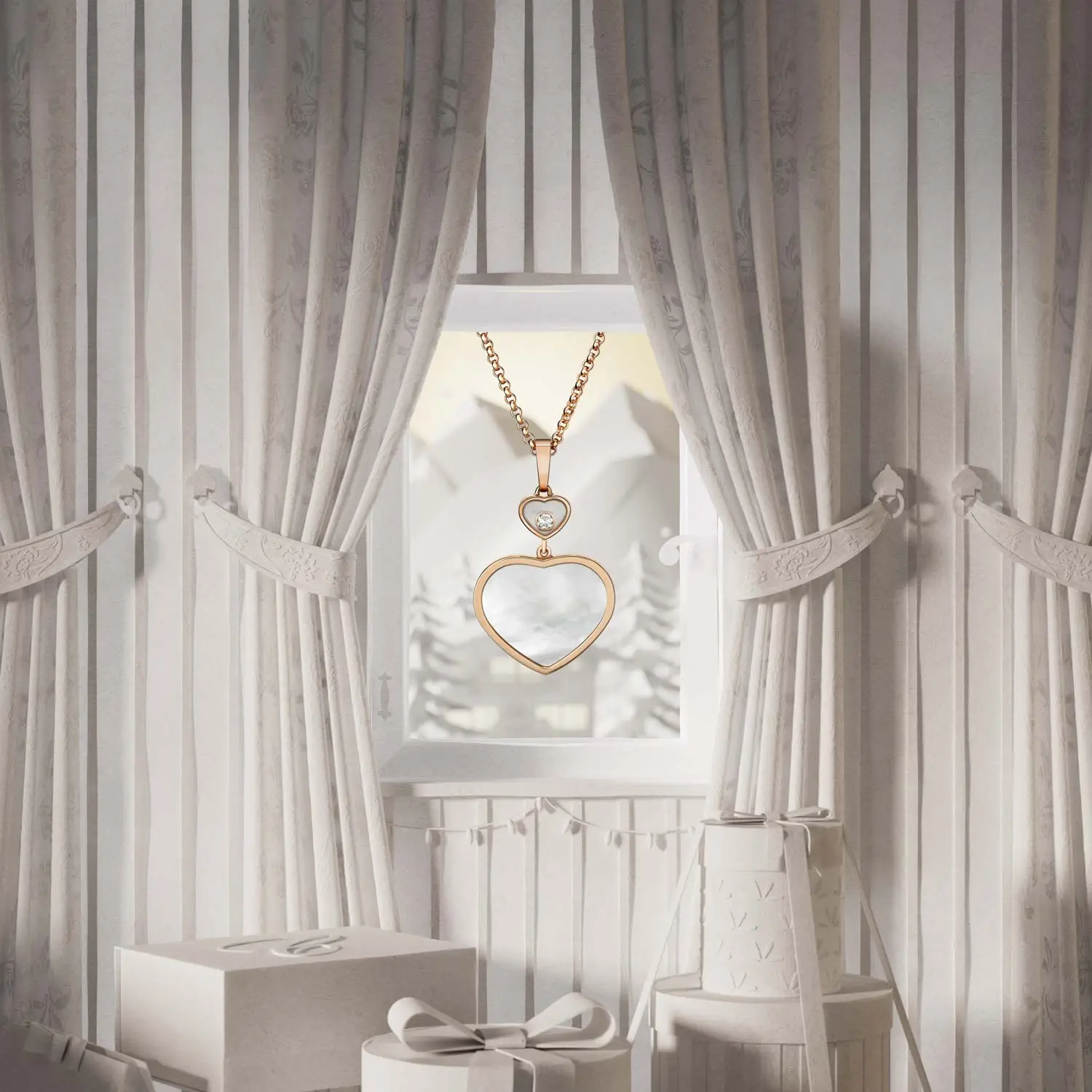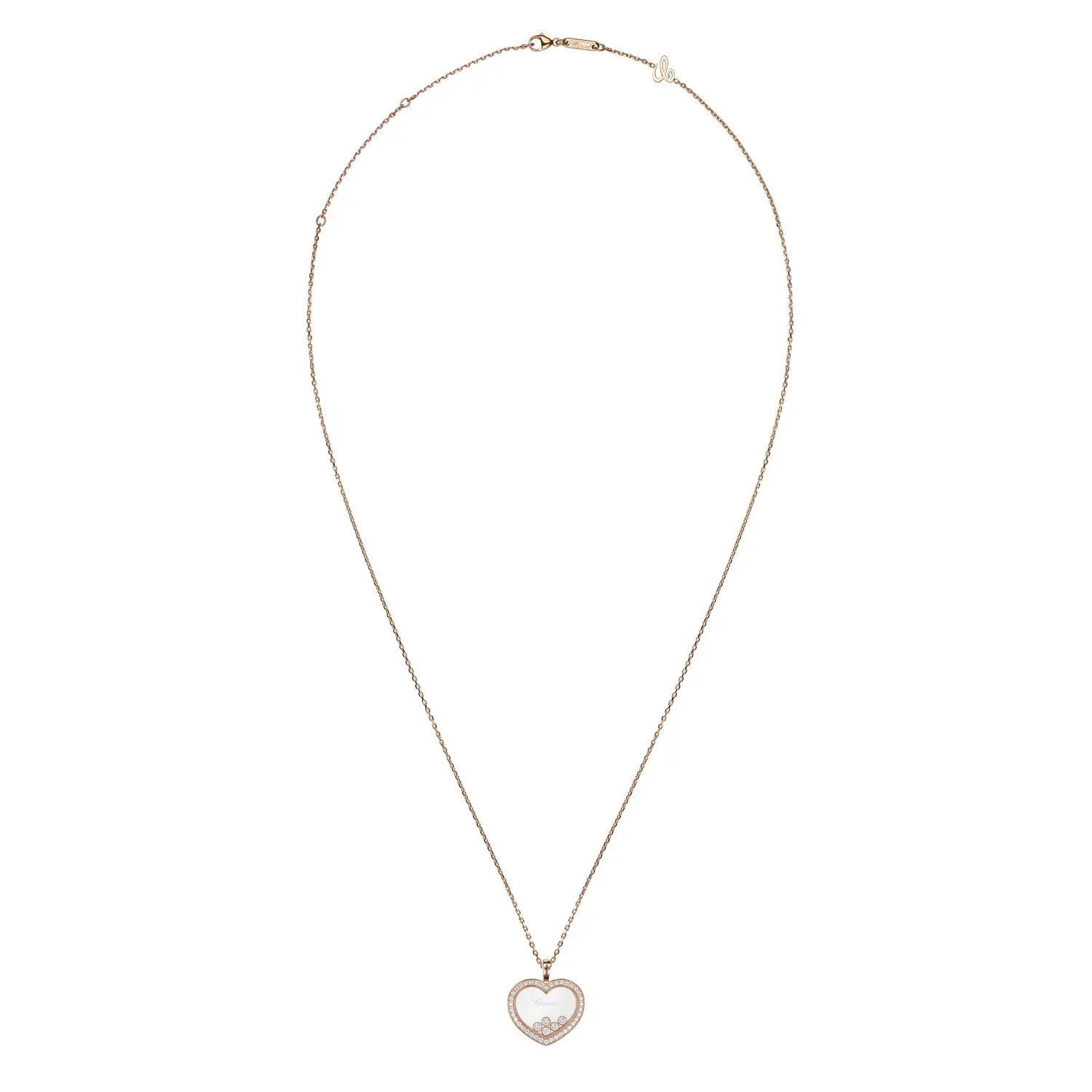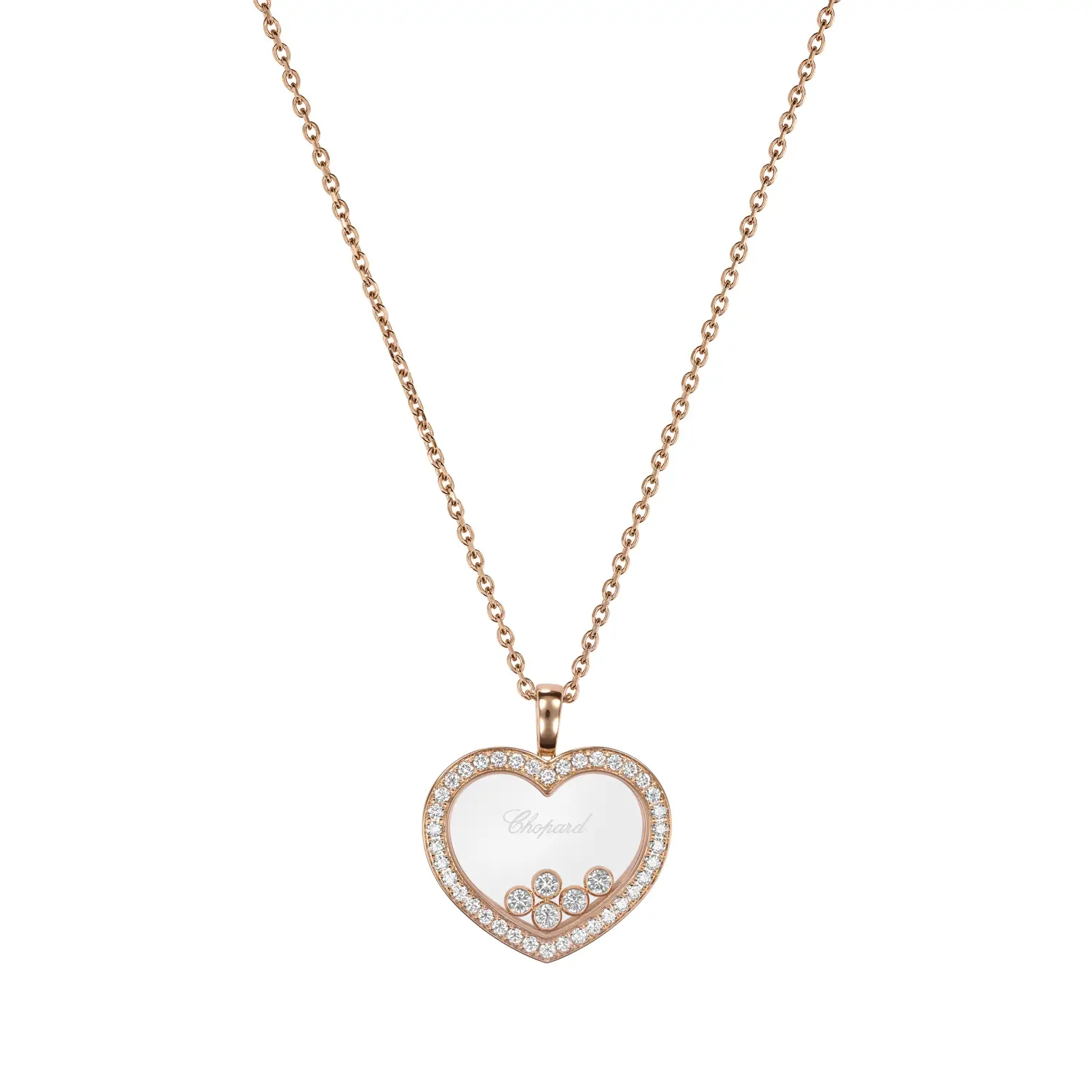Der Chopard Happy Diamonds 79A039-5201 Anhänger vereint feinen Luxus und verspielte Bewegung – ein Markenzeichen dieser ikonischen Kollektion. Gefertigt aus ethischem 18-karätigem Roségold, zeigt er drei frei bewegliche Diamanten, die zwischen zwei Saphirgläsern tanzen. Jeder Lichtreflex verleiht dem Schmuckstück Lebendigkeit und Glanz.