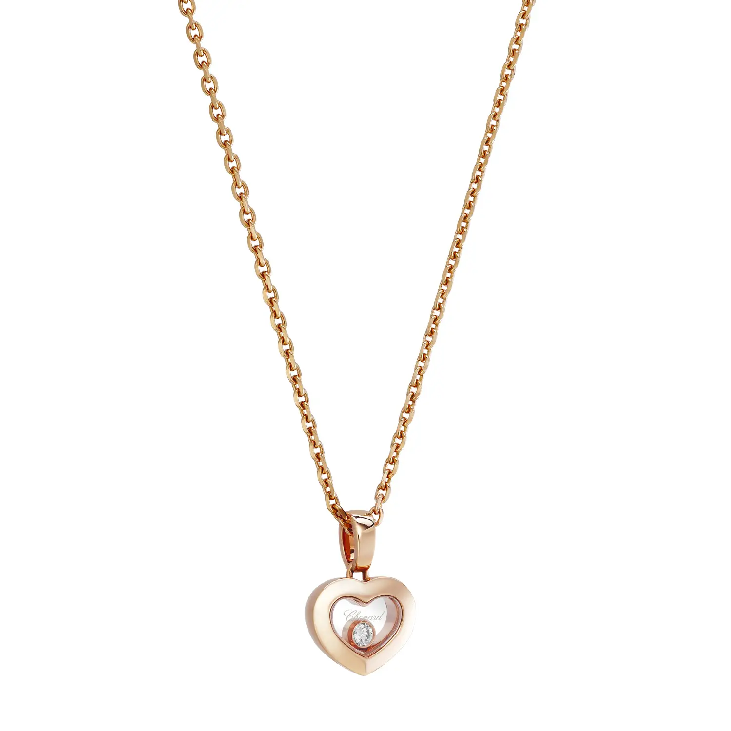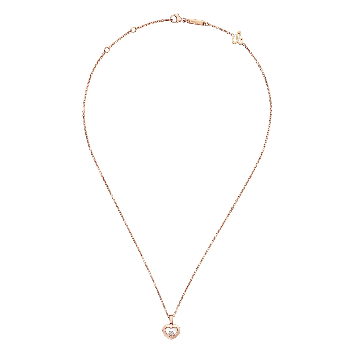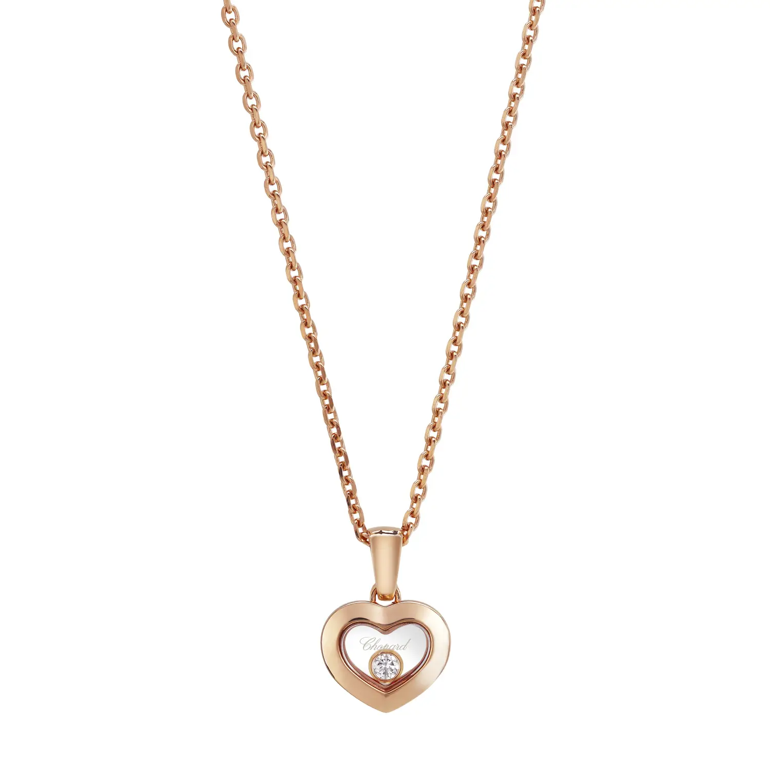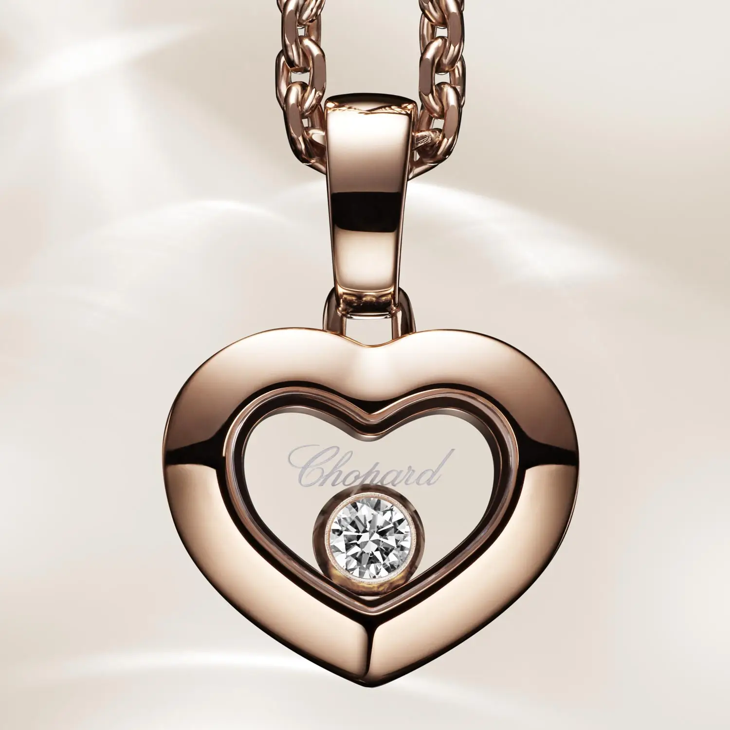 Der Chopard Happy Diamonds Anhänger 79A054-5001 besticht durch eine elegante feminine Silhouette, die die Verbindung von Liebe, Emotion und minimalistischer Ästhetik symbolisiert. Er ist präzise gefertigt aus 18 kt Roségold (750/1000) mit glatter, polierter Oberfläche, die dem Anhänger eine zeitlose und luxuriöse Ausstrahlung verleiht.