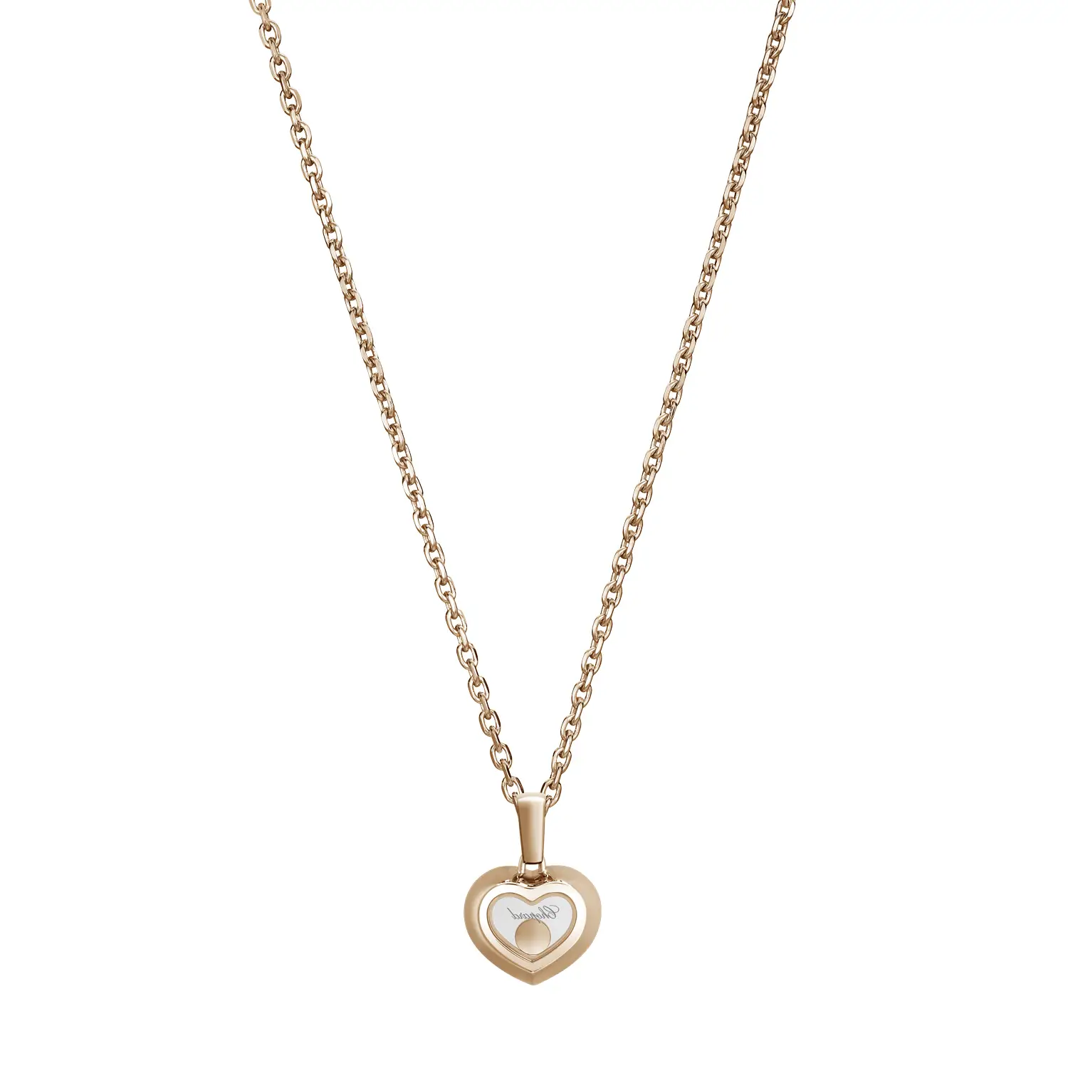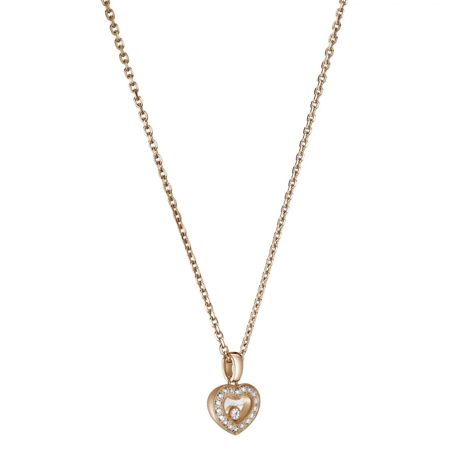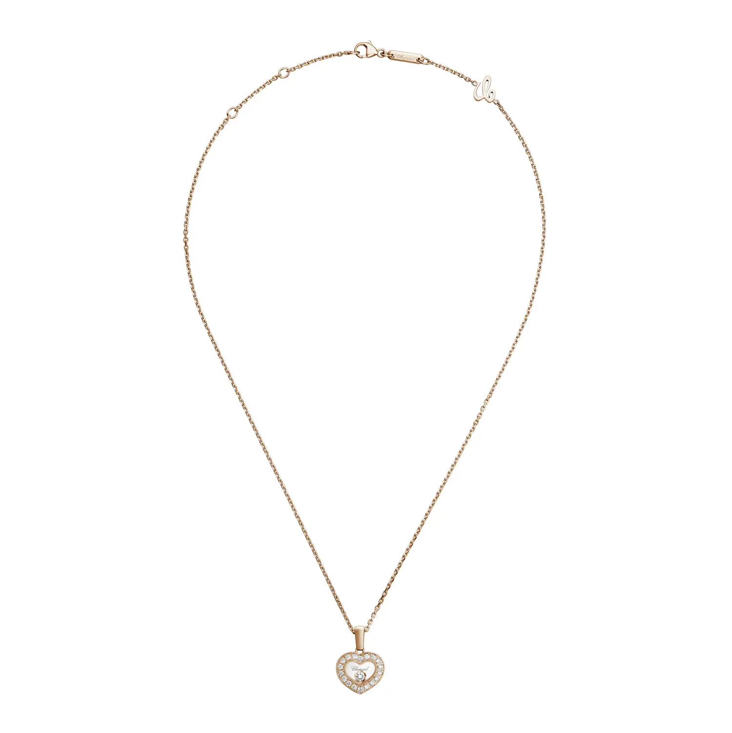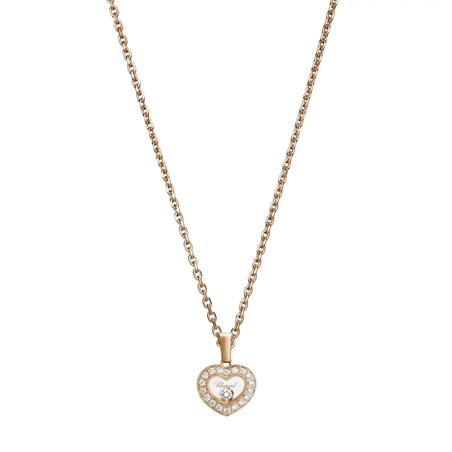 Der Chopard Happy Diamonds Icons 79A054-5201 Anhänger verkörpert Leichtigkeit, Freude und feminine Eleganz – die charakteristischen Merkmale dieser ikonischen Kollektion. Gefertigt aus ethischem 18-karätigem Roségold, zeigt er drei frei bewegliche Diamanten (insgesamt 0,35 Karat), die zwischen zwei Saphirgläsern tanzen – der berühmte „Happy Diamonds“-Effekt, Symbol für Freiheit und Licht.