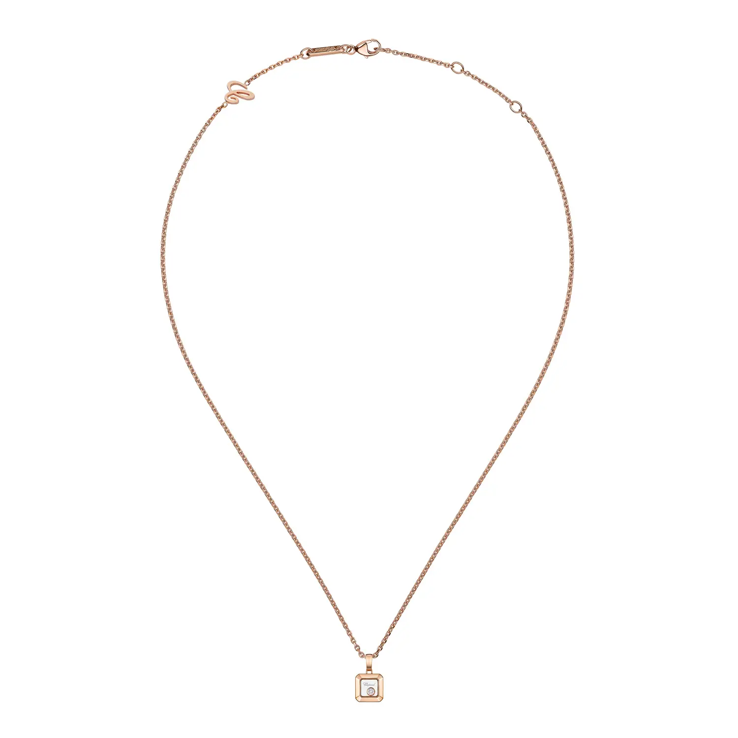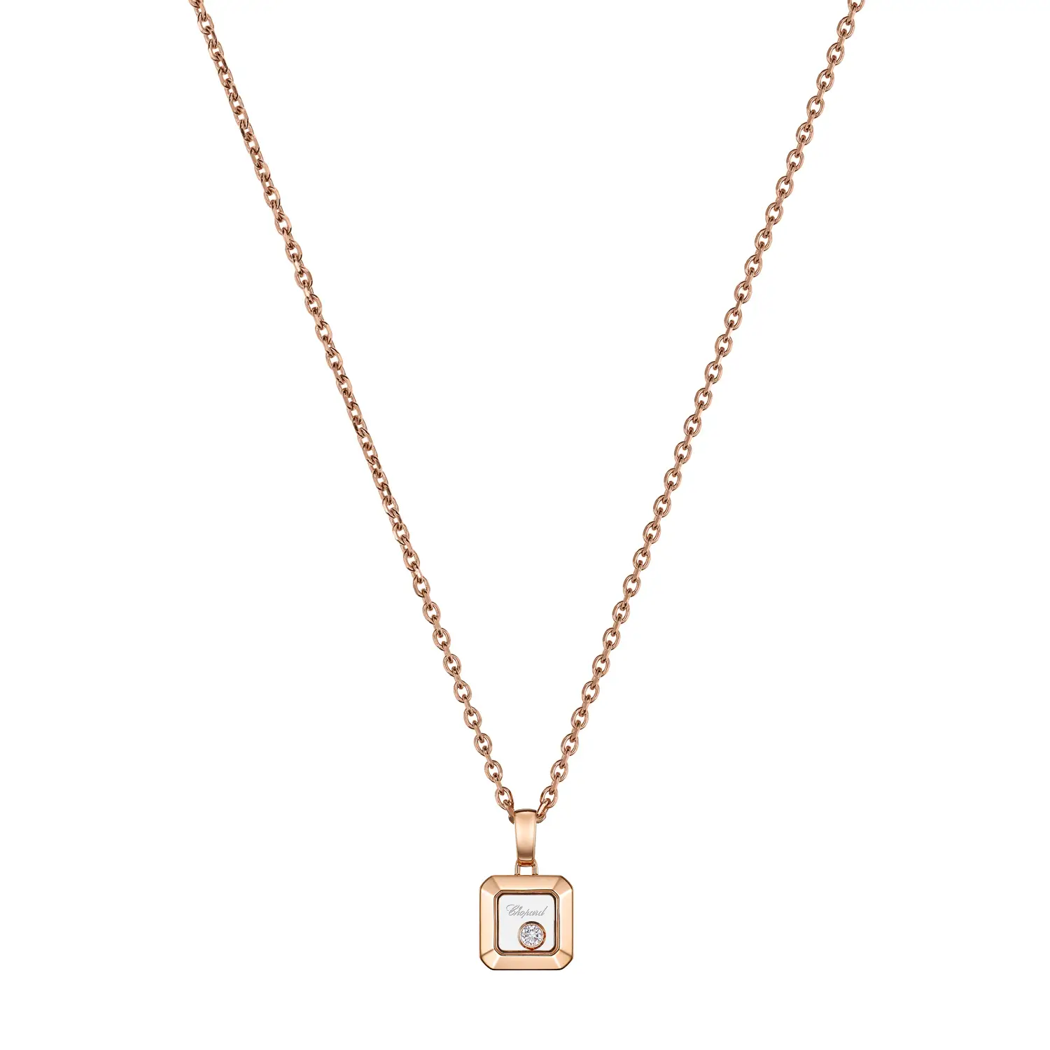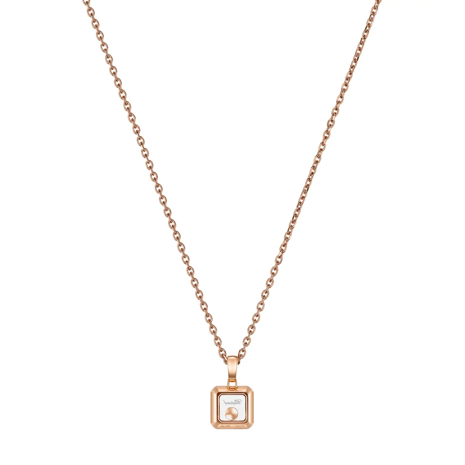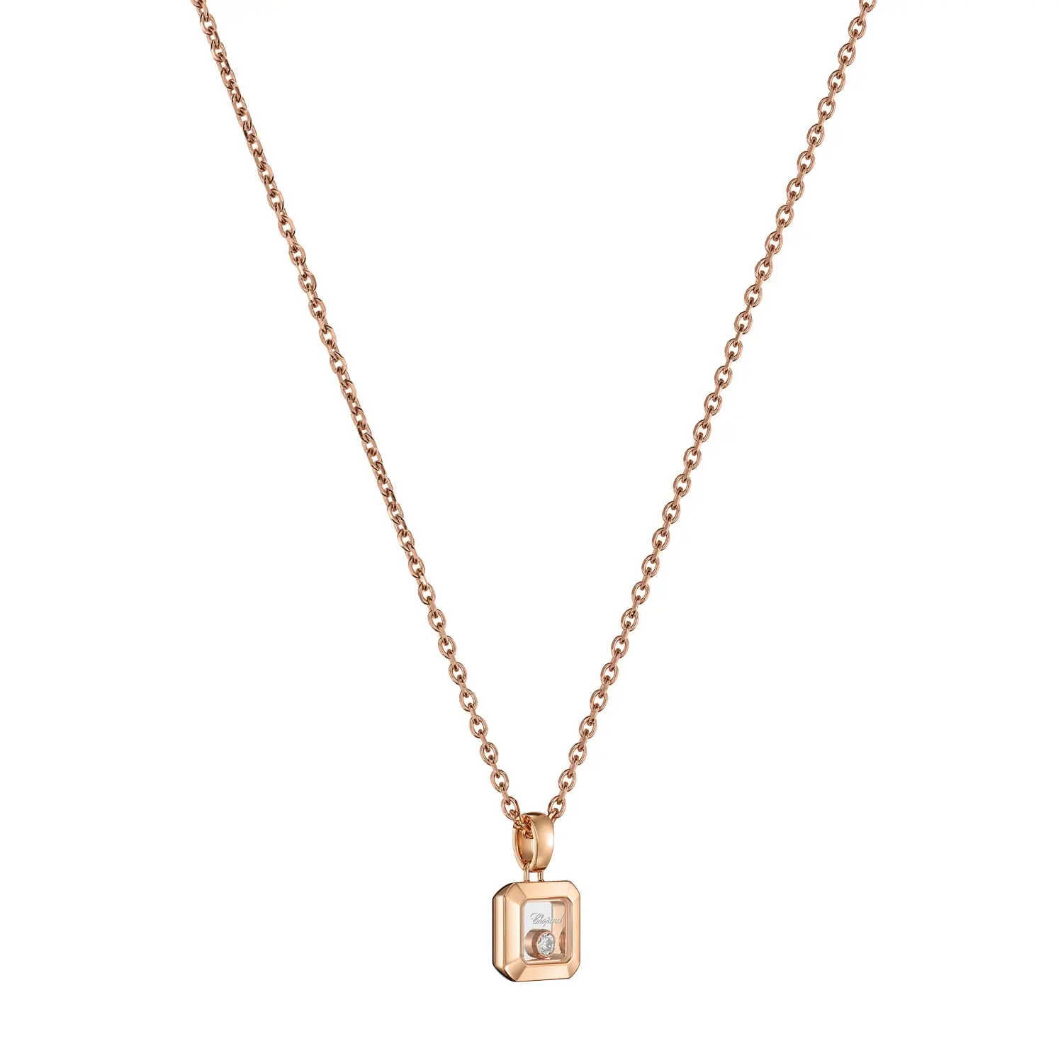 Dieser Anhänger ist an einer 42 cm langen Stahlkette befestigt, die das Schmuckstück elegant ergänzt und für Tragekomfort sowie Stil sorgt. Chopard beweist damit erneut seine Fähigkeit, minimalistisches Design mit außergewöhnlichen Materialien zu vereinen.