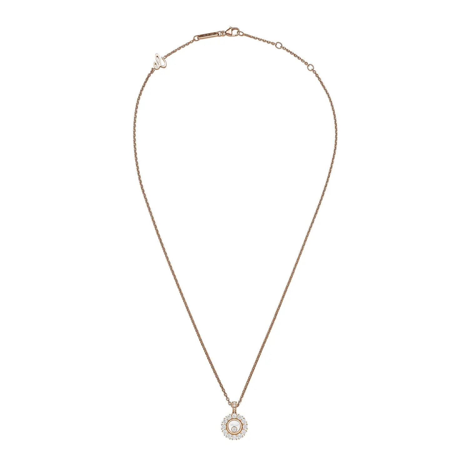 Der Chopard Happy Diamonds Anhänger 79A609-5001 ist ein außergewöhnliches Schmuckstück, das Freude, Luxus und zeitlose Eleganz verkörpert. Handgefertigt aus 18 kt Roségold (750/1000) mit präziser polierter Oberfläche, beeindruckt der Anhänger sofort mit seinem feinen, aber dennoch markanten Aussehen. An einer zarten 42 cm Kette getragen, bietet er die perfekte Balance zwischen Komfort und exklusivem Stil.