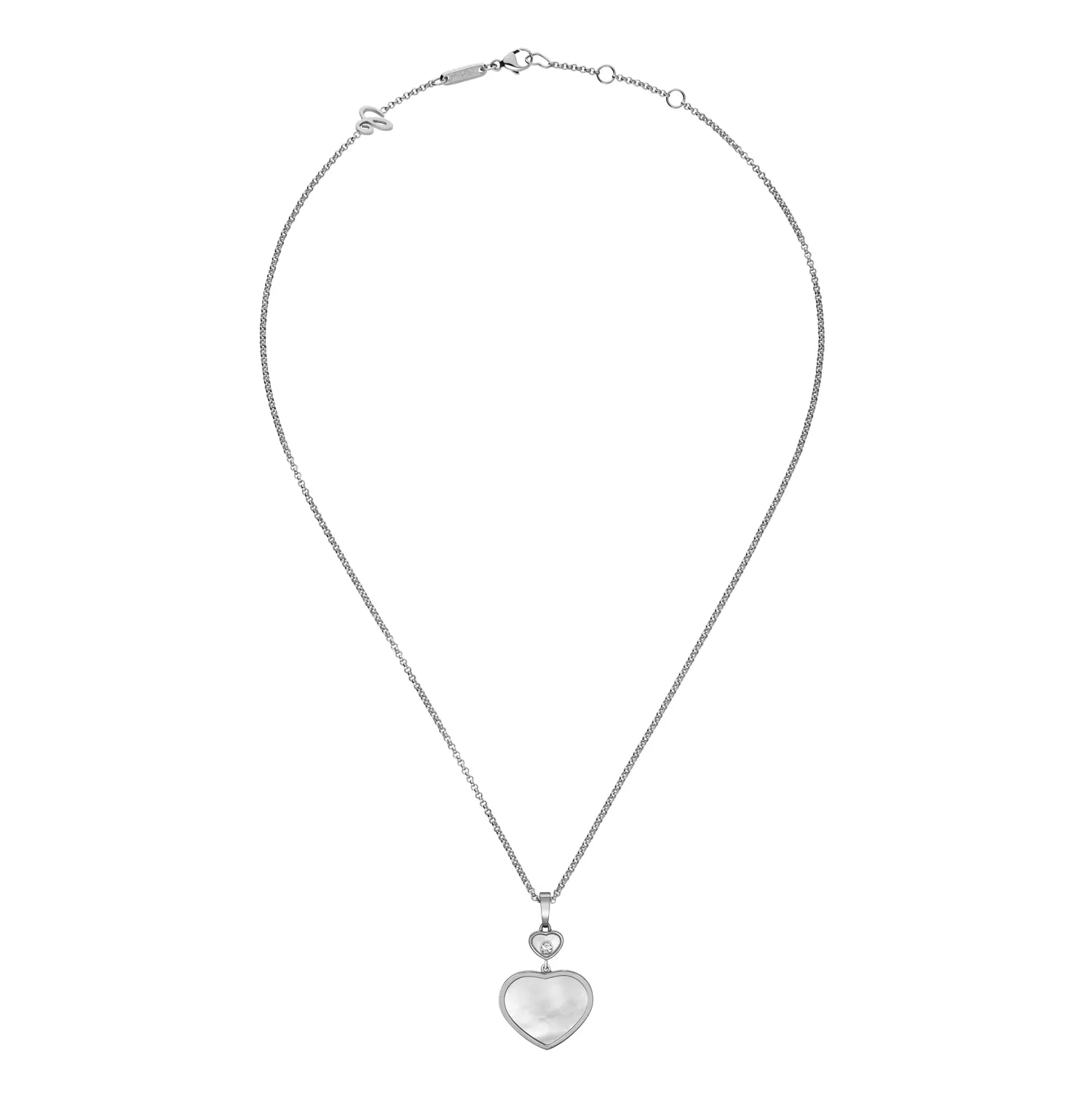 Das zentrale Motiv ist ein Herz aus natürlichem weißen Perlmutt, das als raffiniertes und sensibles Symbol für Zärtlichkeit und persönlichen Ausdruck dient. Ergänzt wird es durch einen natürlichen runden Diamanten mit einem Gewicht von 0,05 ct, mit IF–VVS-Reinheit und F–G-Farbe, der sanft funkelt und dem Schmuckstück einen edlen Akzent verleiht.