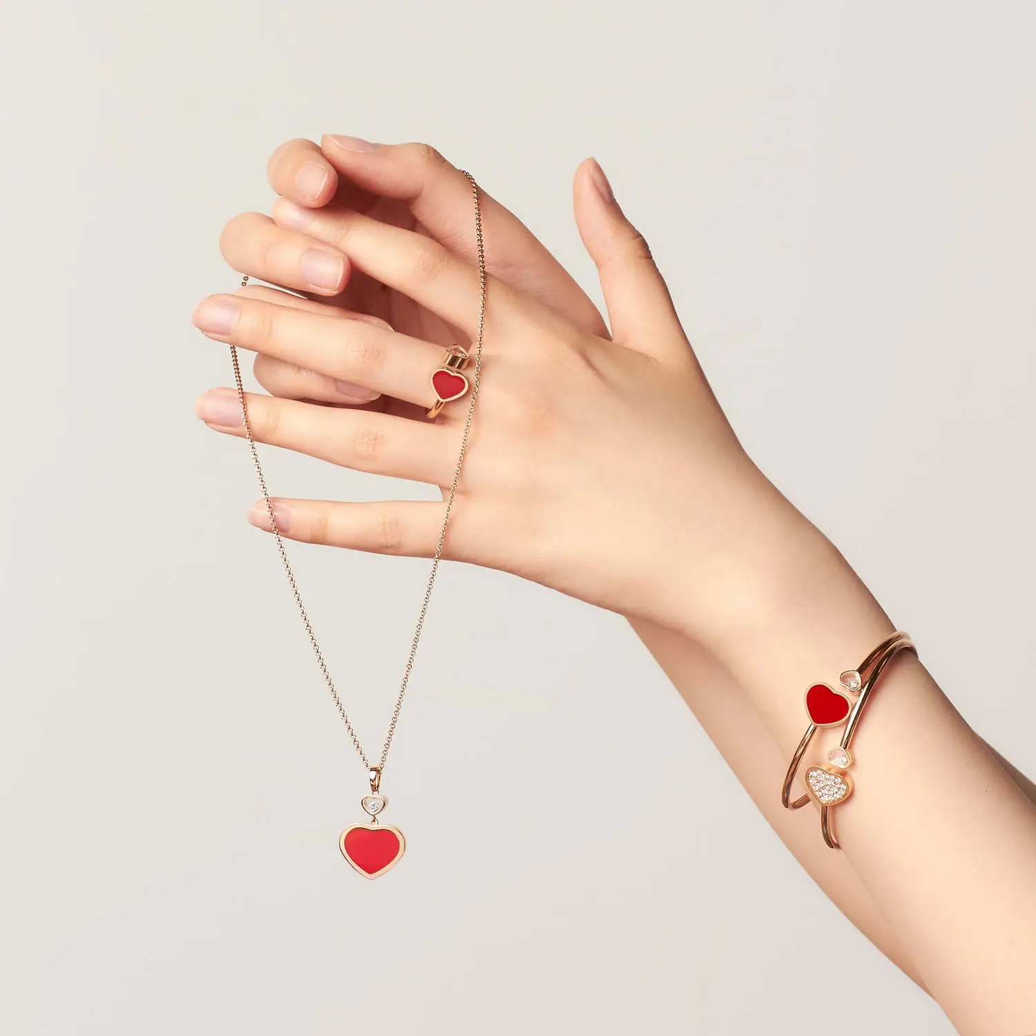 An einer 45 cm langen Kette getragen, wirkt der Anhänger zugleich zart und ausdrucksstark – ideal für den Alltag oder besondere Momente. Das Zusammenspiel aus Goldglanz und Karneolrötung macht ihn zu einem Symbol für Weiblichkeit, Optimismus und Lebensfreude – der wahre Geist von Chopard Happy Hearts.