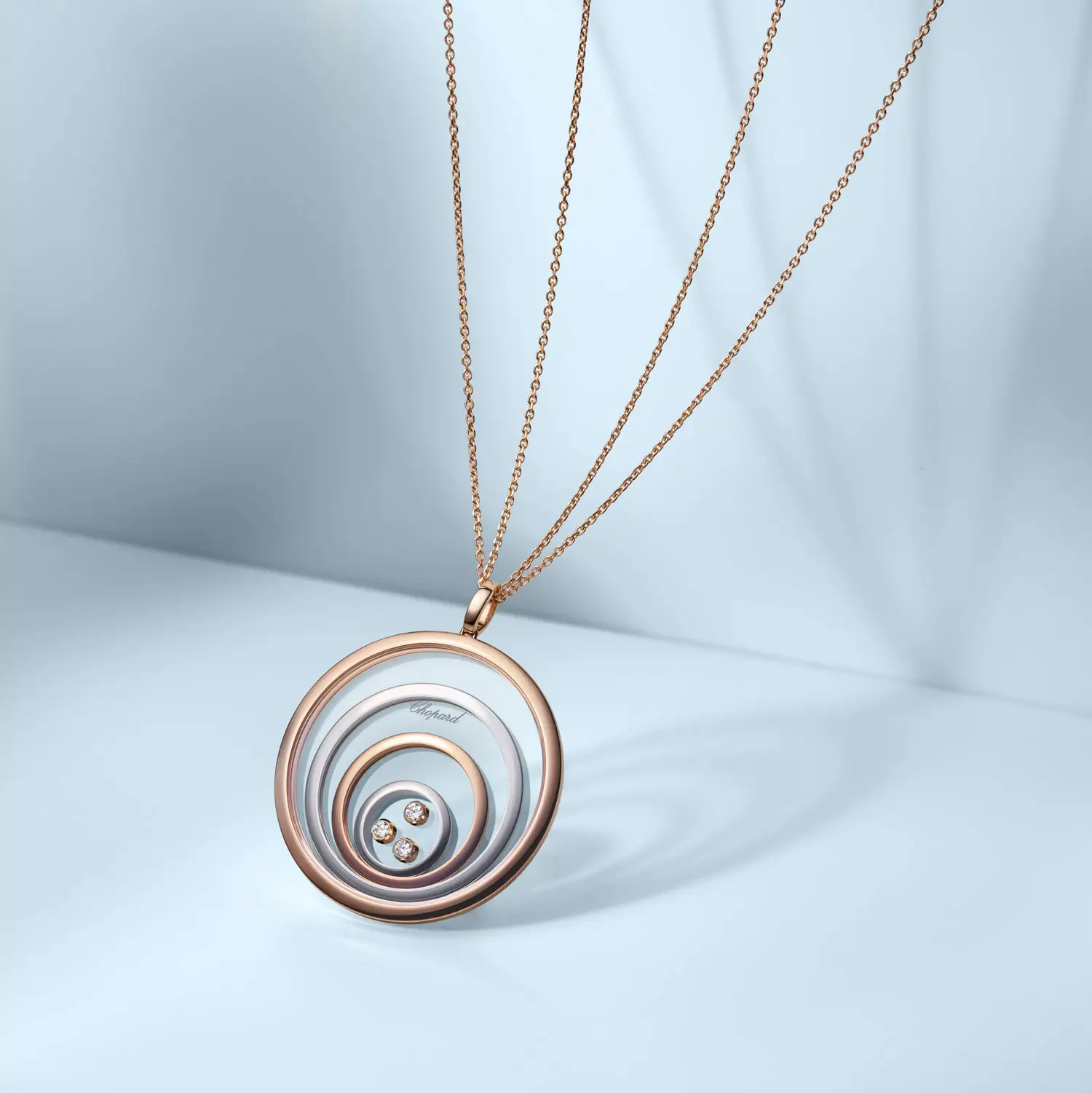 Mit einer 80 cm langen Kette lässt sich der Anhänger einzeln oder im Layering tragen. Jede Bewegung offenbart Chopards meisterhafte Handwerkskunst, die technische Präzision und Emotion vereint – ein Symbol für innere Ruhe, Licht und feminine Anmut.