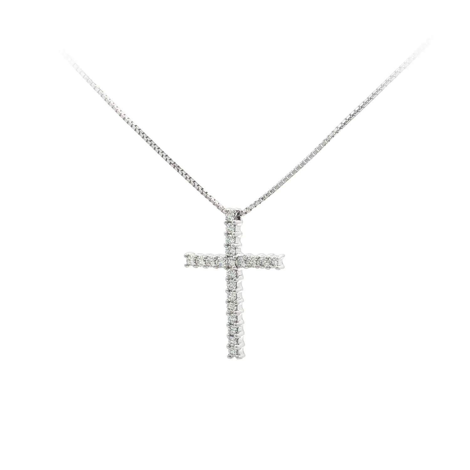 Dieser Kreuzanhänger aus Weißgold symbolisiert Reinheit, Glauben und zeitlose Eleganz. Jedes Segment des Kreuzes ist mit brillantgeschliffenen Diamanten besetzt, die das Licht auf beeindruckende Weise reflektieren und für ein edles Funkeln sorgen. Das schlichte, elegante Design lässt sich wunderbar kombinieren und verleiht jedem Look eine feine Note.