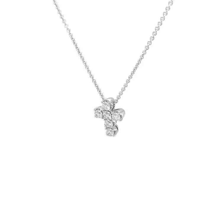 Für den Glanz sorgen natürliche Diamanten gesamt 0,66 ct (6 Steine), Rundschliff / Round, weiße Farbe, Reinheit VS, Farbe F. Die präzise Fassung betont Brillanz und klare Linien – ein eleganter, symbolträchtiger und zeitloser Anhänger, der sich hervorragend mit einer Weißgoldkette kombinieren lässt und zum persönlichen Talisman wird.
