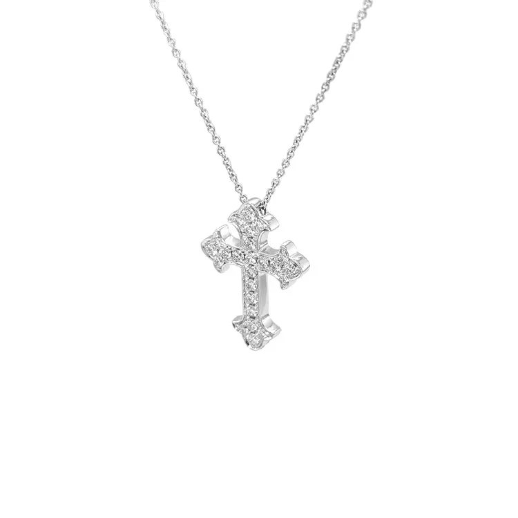 Für Funkeln sorgen natürliche Diamanten gesamt 0,43 ct (24 Steine), Rundschliff / Round, weiße Farbe, Reinheit VS, Farbe F. Die präzise Fassung betont Brillanz und klare Linien – ein eleganter, symbolträchtiger und zeitloser Anhänger, der an einer feinen Weißgoldkette besonders gut zur Geltung kommt.