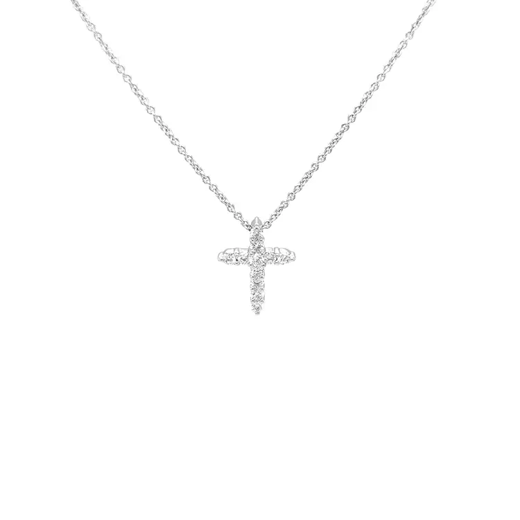 Der goldene Kreuz-Anhänger mit Diamanten vereint spirituelle Symbolik und zeitlose Eleganz. Er erstrahlt in 18 K Weißgold (750/1000) mit polierter Oberfläche und dem charakteristischen Kreuzmotiv (religiös) – zart, aber prägnant; ideal für den Alltag und besondere Momente.
