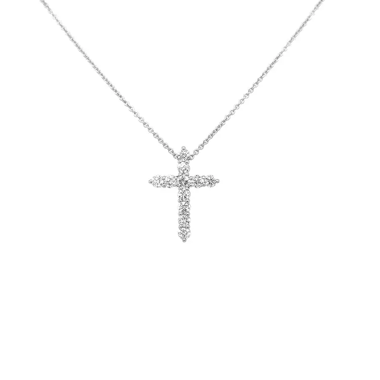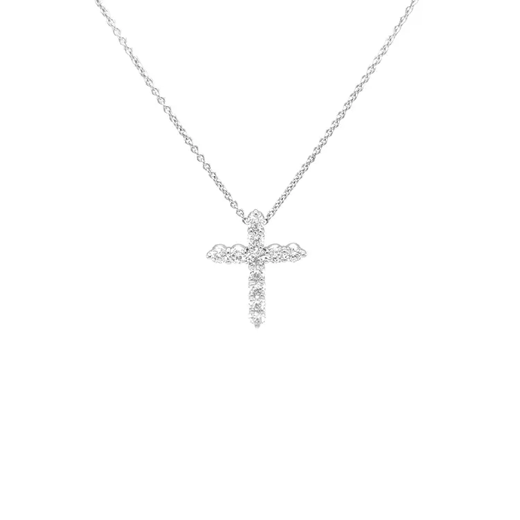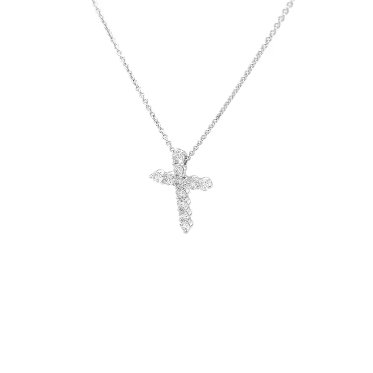 Für den Glanz sorgen natürliche Diamanten (11 Steine), Rundschliff / Round, weiße Farbe, Reinheit SI, Farbe F. Die präzise Fassung betont Brillanz und klare Linien – ein eleganter, symbolträchtiger und zeitloser Anhänger, der an einer feinen Weißgoldkette besonders schön wirkt.