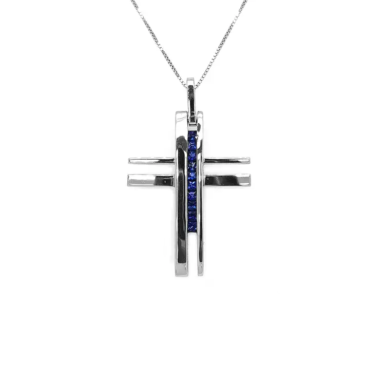 Gold-Anhänger Kreuz mit Saphiren
