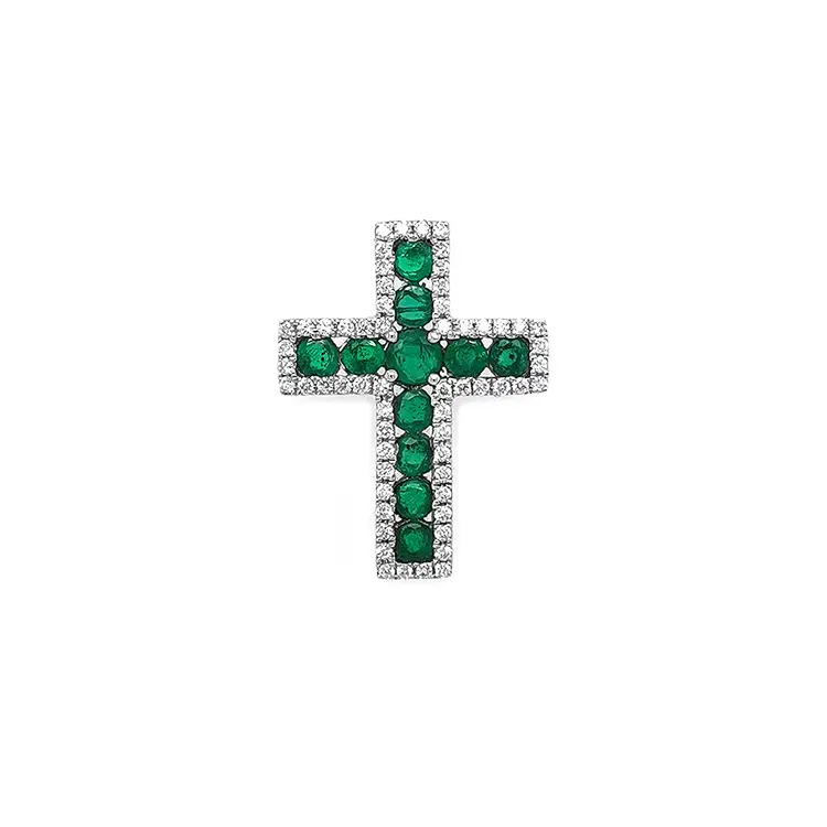 Gold-Anhänger Kreuz mit Smaragden und Diamanten