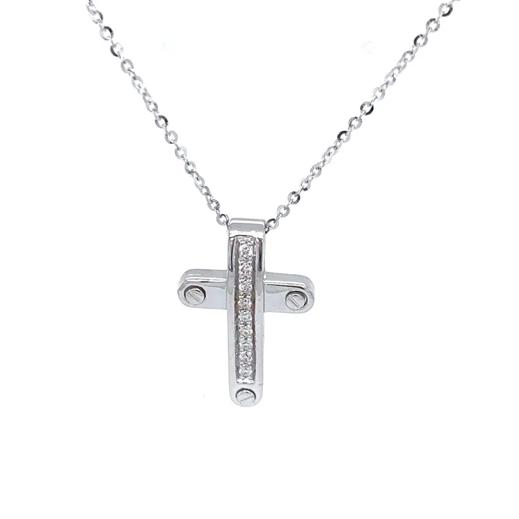 Das Kreuzanhänger Zancan Insignia EC584B vereint Glauben, Stärke und italienische Schmuckkunst auf höchstem Niveau. Gefertigt aus weißem Gold 18 kt (750/1000) mit hochglanzpolierter Oberfläche, besticht er durch klare Linien und edlen Glanz, der jedes Lichtspiel einfängt.