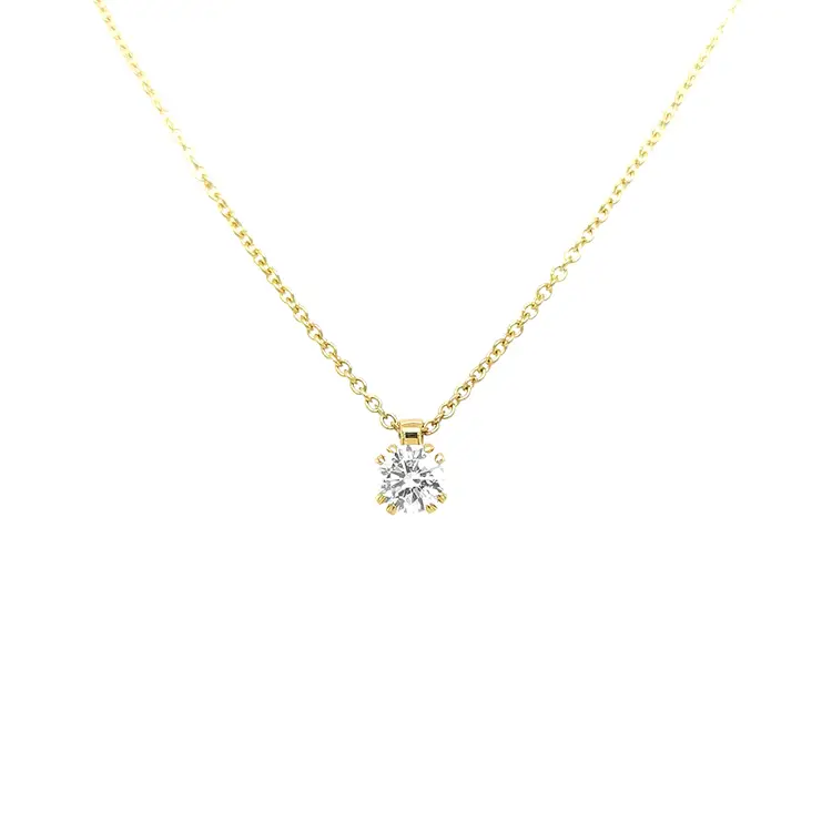 Der Anhänger ist aus 18 Karat Gelbgold gefertigt, und der Diamant von 0,61 Karat wird Ihnen helfen, Ihre Umgebung zu blenden. Die Goldschmiedemeister von Beny Jewellers, die über jahrelange Erfahrung in der Schmuckherstellung verfügen, haben diesen Anhänger in einem Design geschaffen, das sowohl zart und respektvoll als auch attraktiv und sinnlich ist. Sie erhalten mit dem Produkt ein Echtheitszertifikat.