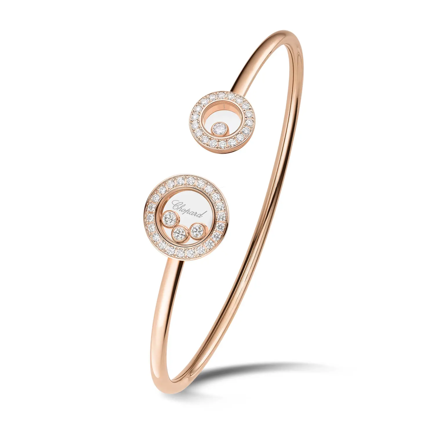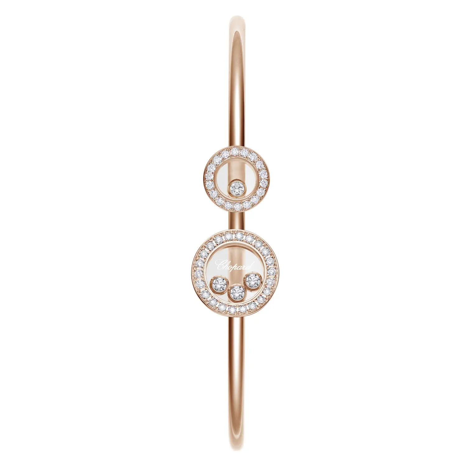Dieser luxuriöse Armreif aus der Happy Diamonds-Kollektion vereint verspielte Leichtigkeit mit handwerklicher Perfektion. Gefertigt aus 18 kt Roségold und besetzt mit 44 Brillanten von insgesamt ca. 0,54 ct, strahlt er bei jeder Bewegung funkelnde Eleganz aus. Jeder Diamant fängt das Licht perfekt ein und sorgt für einen zarten, aber eindrucksvollen Glanz.